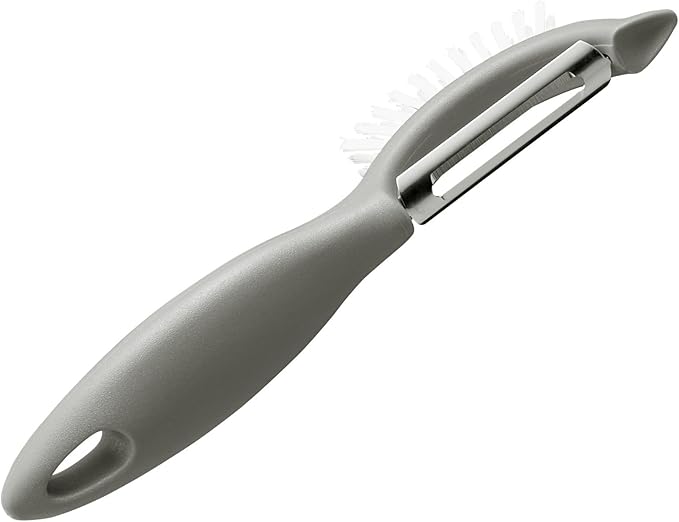 Rachael Ray Kitchen Tools and Gadgets Vegetable / Fruit Peeler with Brush - 3-In-1 , Sea Salt Gray
