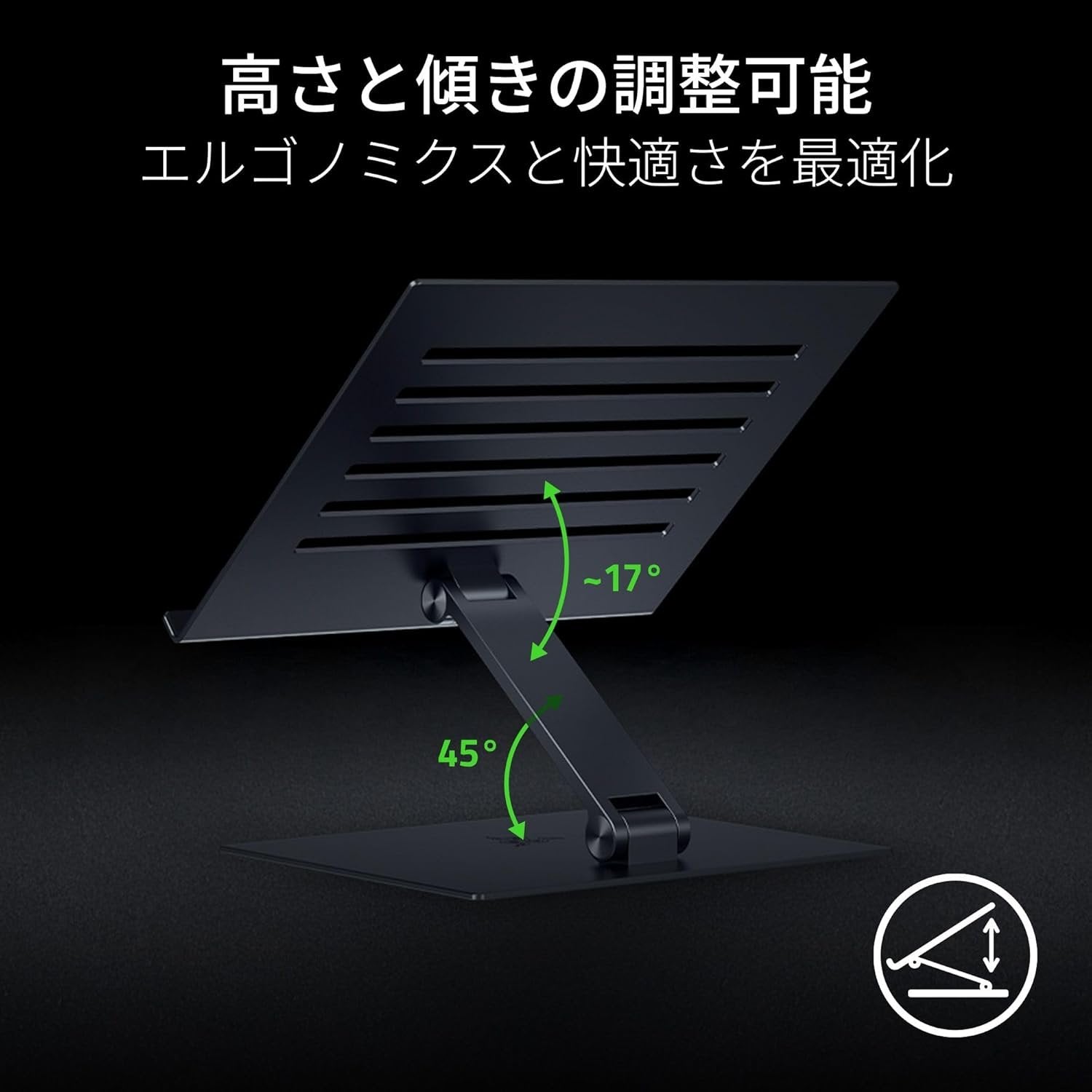 Razer Adjustable Laptop Stand - Ergonomic Height Laptop Stand Built for Laptops up to 18” inch (Height and Tilt-Adjustable, Durable Aluminum, Vented Design) Black