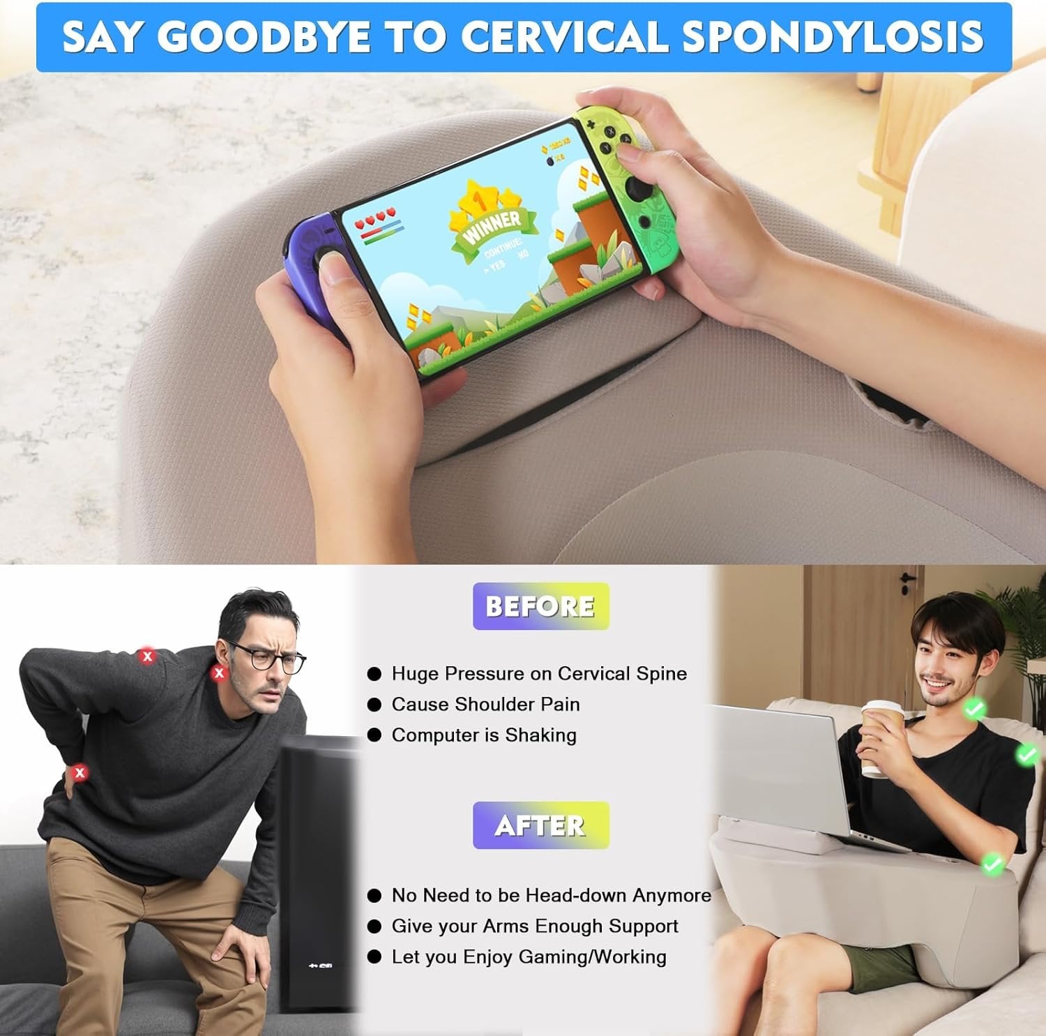 Larger Desktop - Compared with other reading pillows, Sliguy reading pillow for game features a substantial and capacious desktop, give you strong support for elbow and arm when playing games, reading, watching TV, working. Perfect for playing games or reading books, our lap pillow allows you to rest your legs inside the groove Enjoy Your Gaming Time - SLIGUY Extra Large Adult Reading Pillow provides you with the perfect balance between support and relaxation, maintains a healthy posture even when immersed in your favorite games, relieves fatigue and arm pain, and enhances the gaming experience. You can even use it as a lap desk to working, reading,nursing, Crocheting, watching TV etc Pay More Attention to Details - Our arm rest pillow designed with detachable laptop stand, help to adjust the angle of the laptop to effectively relieve the pressure on the neck and shoulders. Meanwhile, we also possess cup holders and side pockets, allow you to place mobile phone, books, remote controls and other items 100% Premium Quality Memory Foam - Unlike other ordinary foam, Our reading pillow made of 100% premium quality high density memory foam, soft and quick to rebound, its the curve of the arms and elbows, reducing arms and elbows fatigue, and we provide double-layer removable lap desk cover to protect your pillow from dust Movable Lap Computer Desk - Whether you're sitting on the floor, sofa or bed, our gaming pillow can quickly turn into a lap desk on your lap, protects eyesight and promotes proper posture. The desk pillow's leg groove frees your legs from discomfort, perfect for game lovers, friends, family, readers, workers
