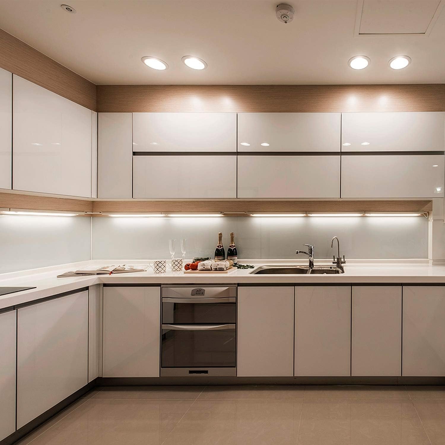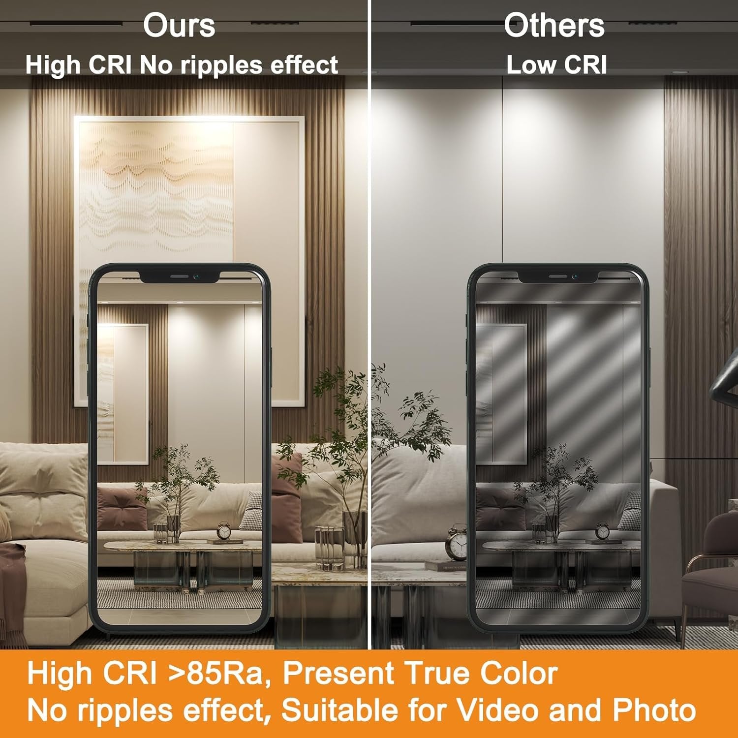 【LED downlight RGB+2700K】12W RGBW Pot lights led 4 inch with remote control that combined with daily lighting and RGB color changing.It has bright warm white (2700K) daily lighting with CRI>85, 1080 lumen, equivalent to 110-Watt original incandescent bulb. There are also 12 colors and brightness adjustments.Recessed rgb led lights is very easy to use and can be the normal lighting, mood lighting, decorative lighting, party lighting and etc. 【Energy Saving Recessed Lighting 】RGB Pot lights are available in 12 colors to reflect different emotions. 3 kinds of brightness can be adjusted by IR remote control, 100% brightness is used for daily illumination, 30% brightness is used for nighttime auxiliary illumination, and 10% brightness is used for sleep mode, to meet different requirements. There is also a one-button night light function can directly provide the darkest lights. NOTE: can NOT work with dimmer switch 【Flash Mode & Smooth Mode】Two lighting modes allow you to set up the appropriate atmosphere anytime. Flash mode gives you a stage effect when enjoy concert or stage performances, let the light create an immersive feeling. If you want to create a comfortable and relaxing atmosphere, the smooth mode automatically cycles through the gradient color is the most appropriate. It also adjusts the rhythm and creates more surprises and romance 【Memory & Synchronization】This color changing recessed lights can memory the last color or mode we used. Synchronization is a revolutionary innovation for environments where multiple recessed lights are used together. When we use flash and smooth modes, the rhythm of the color changing of the recessed lights can always be consistent 【Timing function】The led recessed lighting 4 inch can be set to automatically turn off the light after a few hours. Cycle timing of (24 hours) is another surprising timing option. We can install the recessed light in the bedroom, living room, bedroom, hallway and set the cycle time (24 hours). Then the recessed lighting would turn on and off automatically every day, which changes our lives and makes life more convenient 【Easy to install】4 inch rgb led recessed lights have a mounting depth of 1.29in. The rgb pot lights outer diameter is Ø 4.7in.The ceiling cutout is Ø 3.14in - 4.5in. It is easy and safe to install. Just send the rgb recessed light into the hole and connect the power,the installation is convenient and safe. It is suitable for installation and use in different places , such as home, hotel, coffee shop, restaurant, Bar, game room, etc.