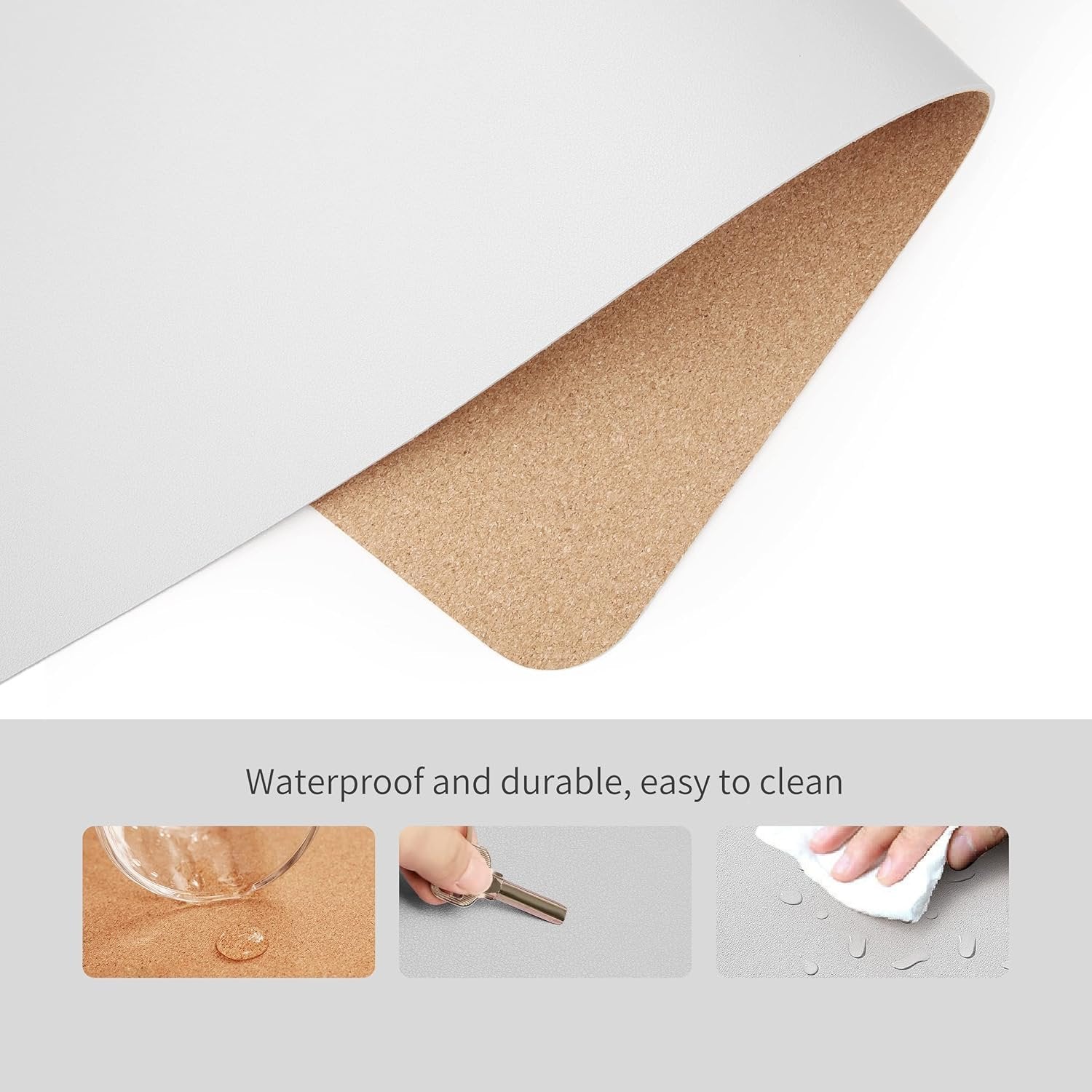 RENMTURE Dual-Sided Desk Pad, Natural Cork & PU Leather Large Mouse mats for Office and Home Work, Desk Protector Non-Slip, Waterproof, Easy Clean (White, 23.6" x 13.7")