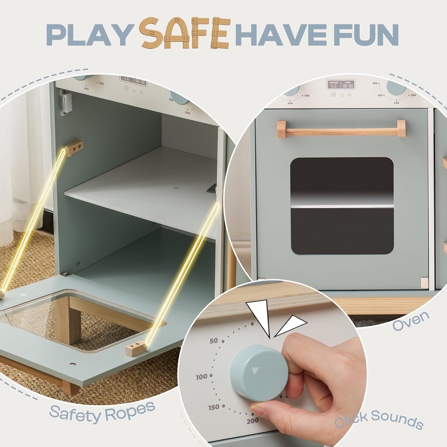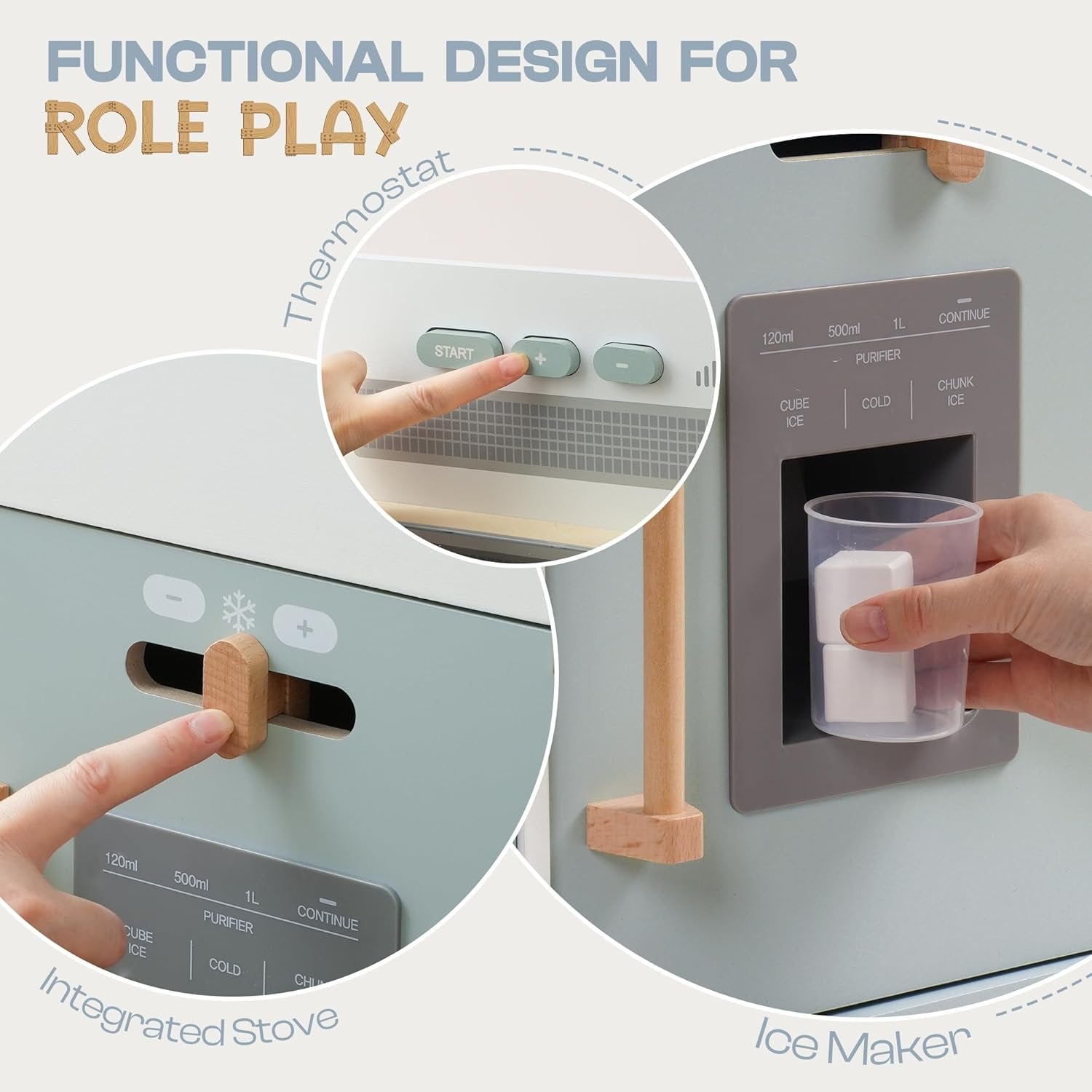 🍳Real Culinary Magic✨ Our kitchen goes beyond the basics – the stove features authentic lights and sounds, turning playtime into a culinary spectacle! Picture your child's joy, mimicking real kitchen action with sizzling sounds and lifelike lighting. It's the fun and realism others lack, making every play session a magical adventure! 🌈 Functional-Play-Kitchen🍦 Elevate playtime with our Montessori-inspired Wooden Play Kitchen! Chic white design, wooden handles, and a shiny metal faucet transport your child to a world of creativity. The stove, with lights and sounds, brings cooking joy to life. Plus, an integrated ice maker adds a cool touch for endless imaginative play! 🚀 Hands-On Fun & Learning🎓 Create an interactive world with our Wooden Play Kitchen! Touch-sensitive controls on the back spark imagination, letting your child play chef with simulated cooking. The temp dial? It's not just fun, it teaches heat levels! This hands-on play boosts brainpower, making learning a blast! 🎃A Gift that Never Goes Wrong💝 ROBOTIME play kitchen is a great addition to any play area. It is perfect for birthdays, Christmas and festivals. The set is easy to assemble and comes with clear instructions and all the necessary tools, allowing kids to start cooking up fun in no time. 📜Safe Material🔍 We ROBOTIME are caring about children's health and paying attention to product details. This wooden toy is made of solid wood. Every edge of the toy is polished and processed. The included manual will have a clear instruction on how to build the item step by step. You can easily assemble it in a very short time.