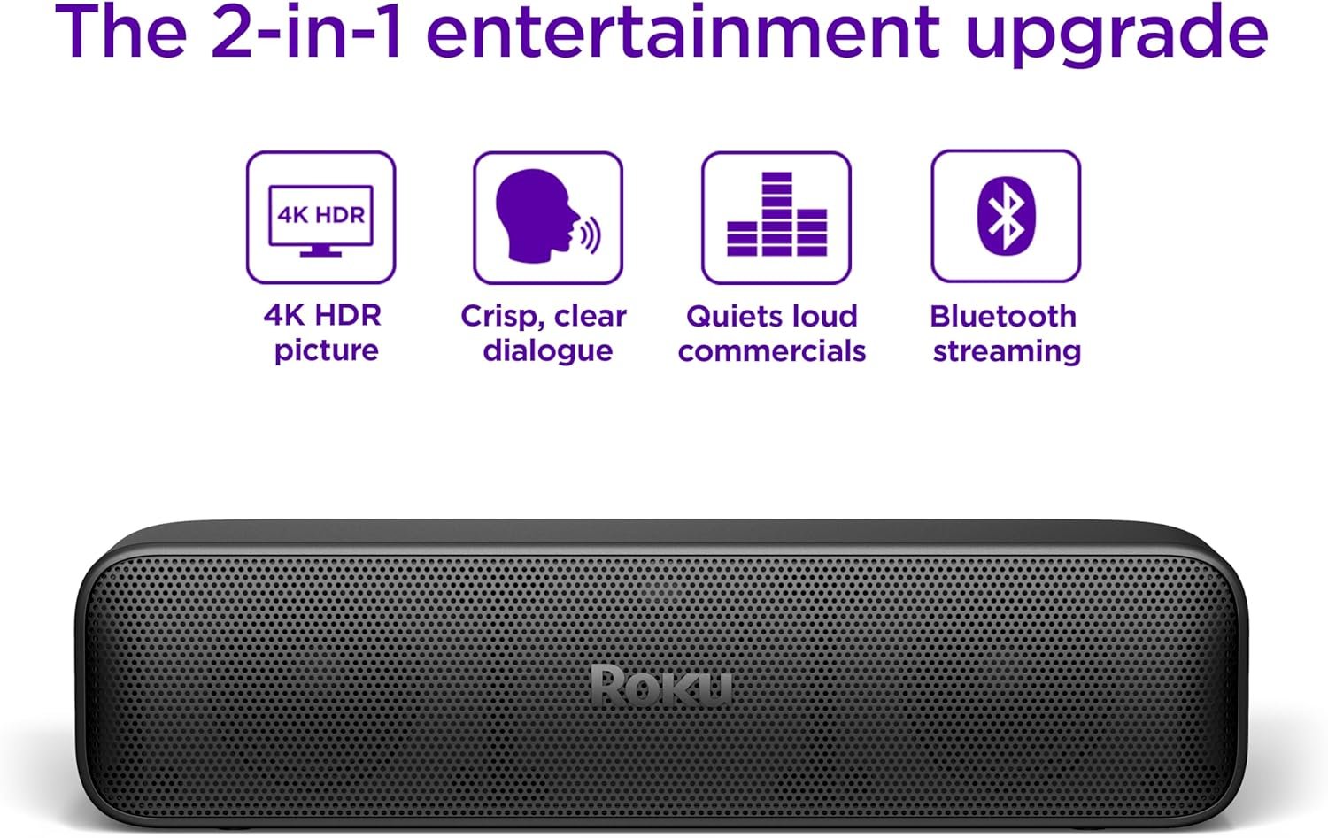Roku Streambar SE | 2-in-1 TV Soundbar with Built-in 4K/HD/HDR Streaming, Premium Speakers, & Enhanced Speech Clarity for Crisp, Clear Dialogue - Quick Guided Simple Setup