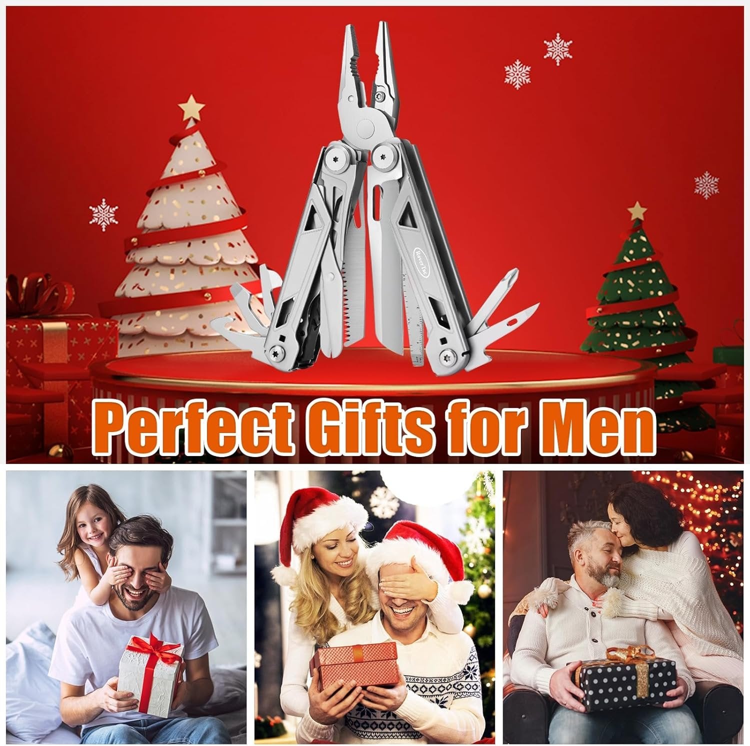 16-in-1 Multitool Pocket Knife: Features Knife, Pliers, Scissors, Saw, File, Wire Cutter, Wire Stripper, Bottle Opener, Can Opener, Ruler, Sewing Tool, Philips/Slotted Screwdrivers. Heavy-duty Stainless Steel Multi Tool: Made from high-quality stainless steel, this pocket multitool pliers will stand the test of time and conveniently travel with you with a durable nylon sheath. Must-Have Camping Essentials: Great for camping, hiking, hunting, DIY, EDC, and simple repairs; Perfect addition to camping essentials, toolbox, glovebox, work wear, and fishing and hiking gear. Perfect Gifts for Men Women Dads Husbands Sons Boyfriends for Christmas, Birthday, and Father's Day. It makes a special gift for teenage boys and scouts as well. 100% Satisfaction Guarantee: We stand behind our products and warranty. RoverTac offers a lifetime warranty against defects in material and workmanship and no reason return policy to guarantee you the BEST purchase experience.