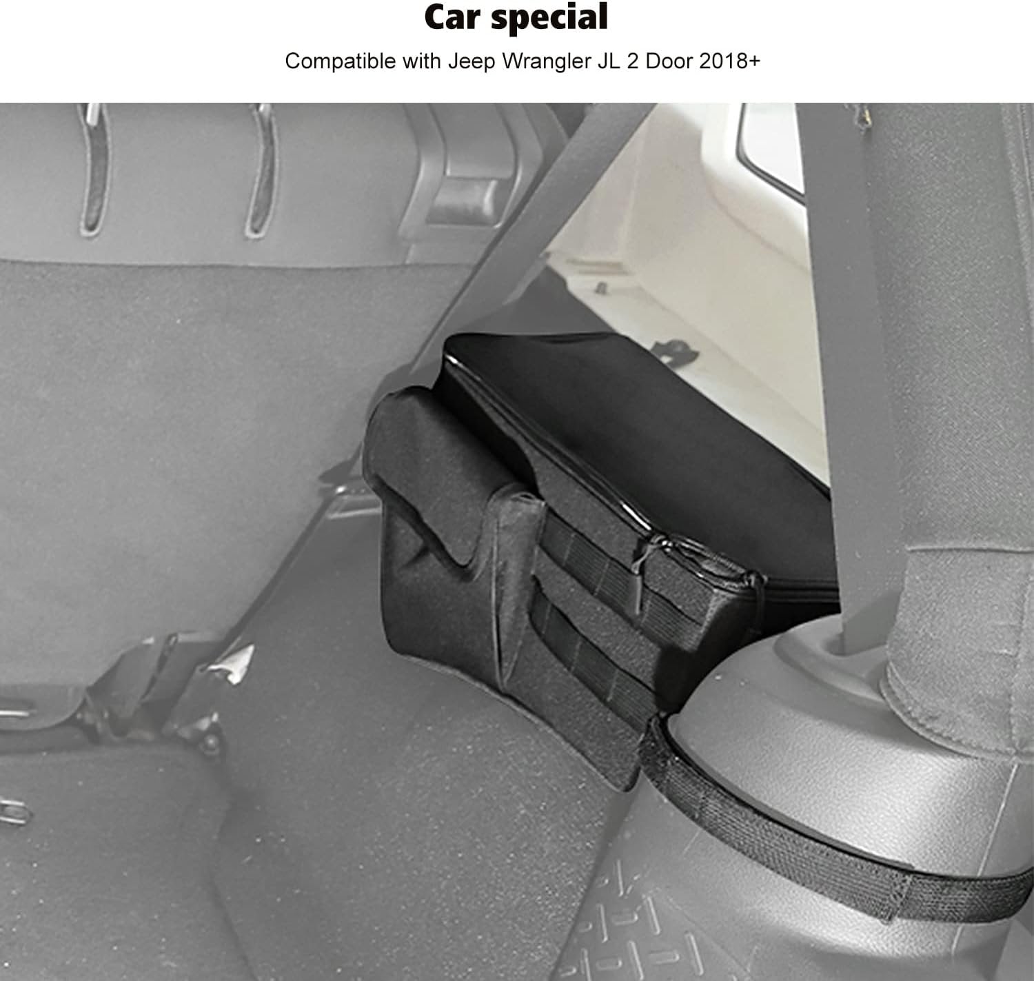 【FITMENT】OEM design trunk organizer compatible with 2018-2023 Jeep Wrangler JL 2-Door 【HIGH QUALITY】Made from high quality 600D Oxford cloth with anti-tearing properties, strong, lightweight, washable and durable in use 【SAVING SPACE】Organize a variety of things from Groceries to emergency tools or cleaning supplies while saving room in your trunk 【EASY INSTALLATION】Easy install, just install the screws on the corresponding hole position and tie the Velcro to the roll cage. Double fixation for firmness and safety 【SATISFACTION GUARANTEE】If you're not 100% satisfied with our products, simply return it for a full refund in 30 days, no questions asked money back guarantee with 365 days warranty.