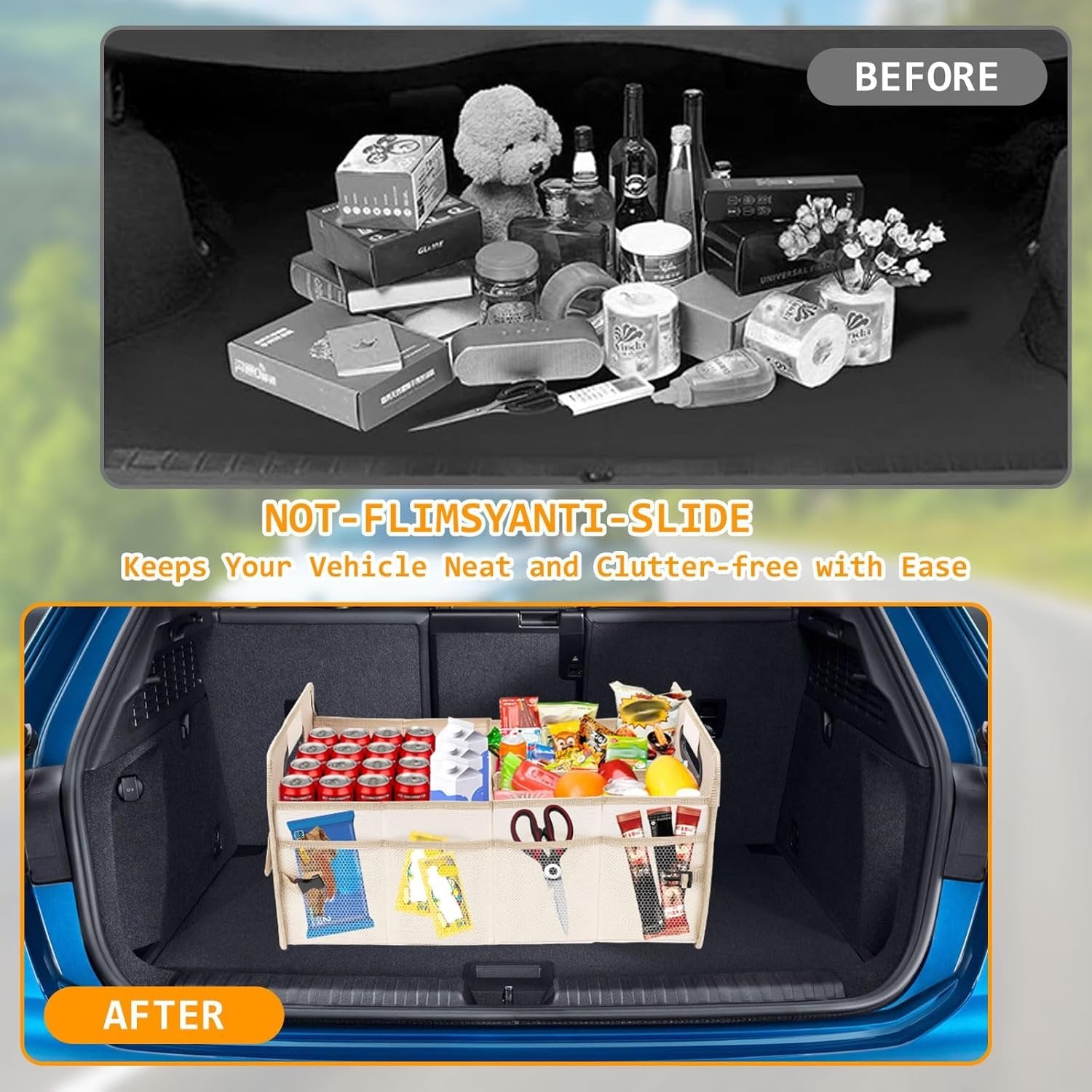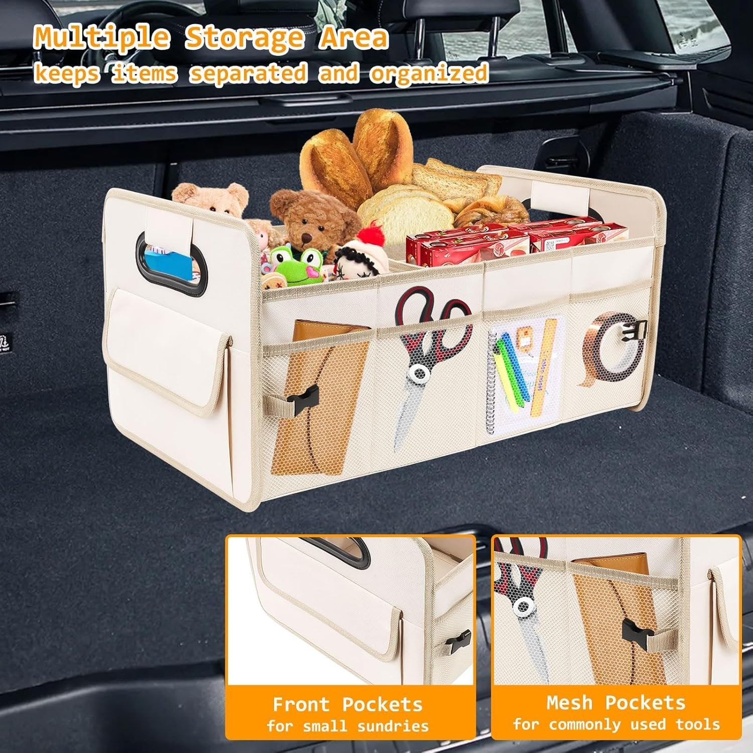 Ruaizel Car Trunk Organizer, Collapsible Car Boot Storage, Water-Resistant Car Organizer, Multi Compartment Car Organiser, Boot Storage Organiser with Reinforced Handles (Beige)