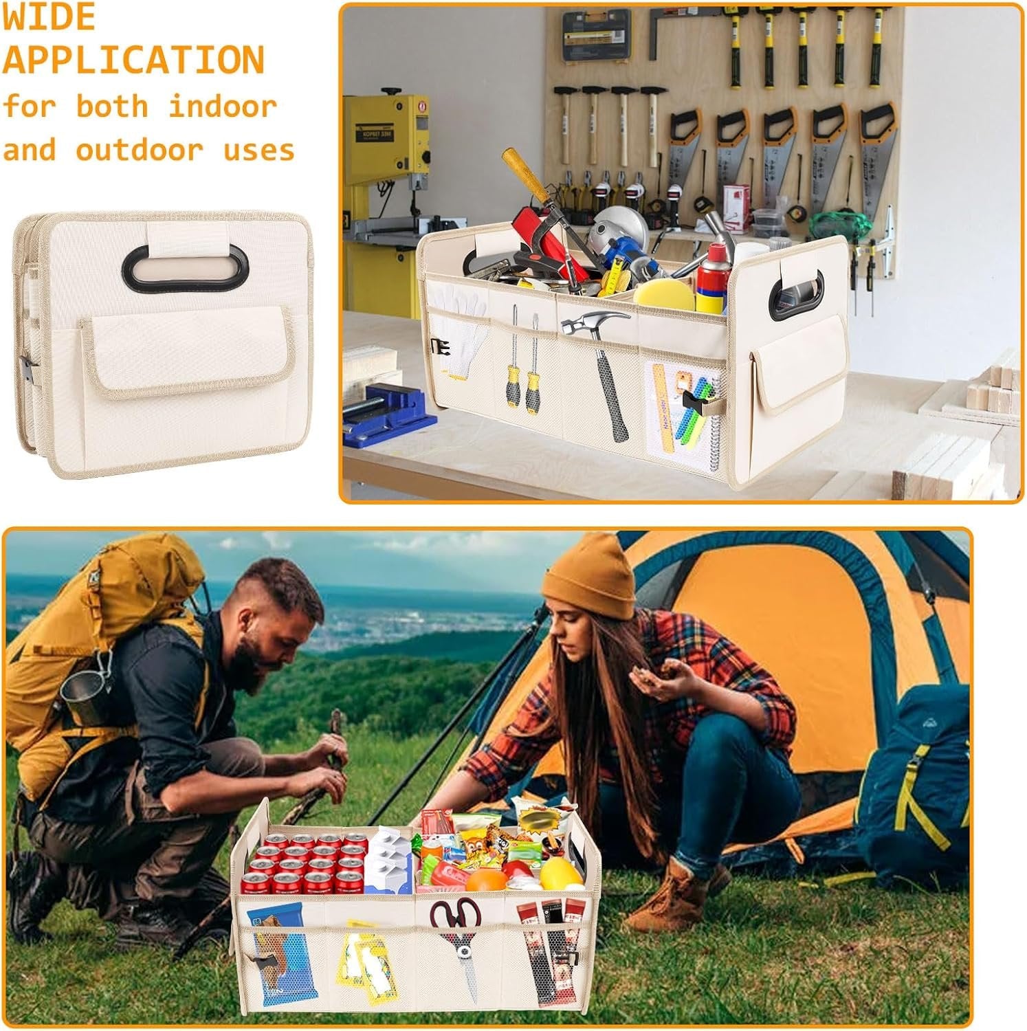 Colour-Beige Brand-Ruaizel Product dimensions-32D x 53W x 27H centimetres Manufacturer-Ruaizel SpecificationName: Car Trunk OrganizerProduct Expansion Size: 53 * 32 * 27cmFolded Size: 32.6*27.6*4cmMaterial: 600d Oxford ClothColor: Black, BeigePacking ListCar Trunk Organizer*1 LARGE CAPACITY: The car boot organiser beige measures 53* 32 * 27 cm when unfolded, with 3 large storage compartments and multiple side pockets, providing plenty of space to meet your storage needs FOLDABLE STORAGE: The car boot organiser has a foldable design, when not in use, the organizer can be folded and stored by the buckle, saving space in the interior of your vehicle REINFORCED & THICKENED: The multi compartment car organiser features a reinforced base plate that effectively maintains the shape of the organizer and ensures that items are stored in an organized manner HIGH QUALITY & DURABLE: The trunk organiser is made of high quality oxford cloth, wear-resistant and waterproof, long service life, and easy to clean, it is the ideal choice for your journey storage WIDELY APPLIED: The foldable car boot tidy organizer is the right size, able to be placed on a variety of cars and SUVs. In addition to traveling, camping and other outdoor activities, the organizer can also be used for indoor storage