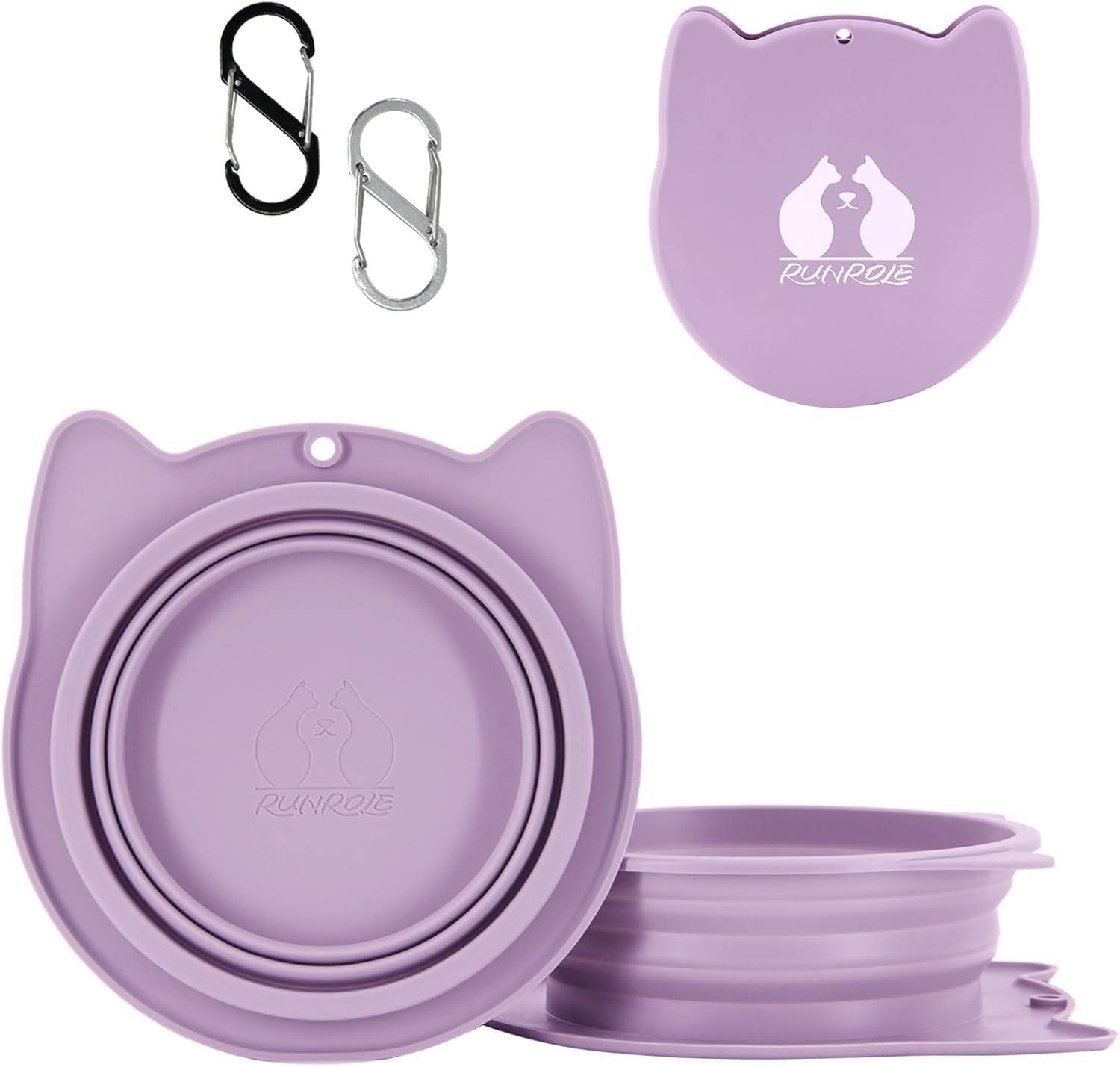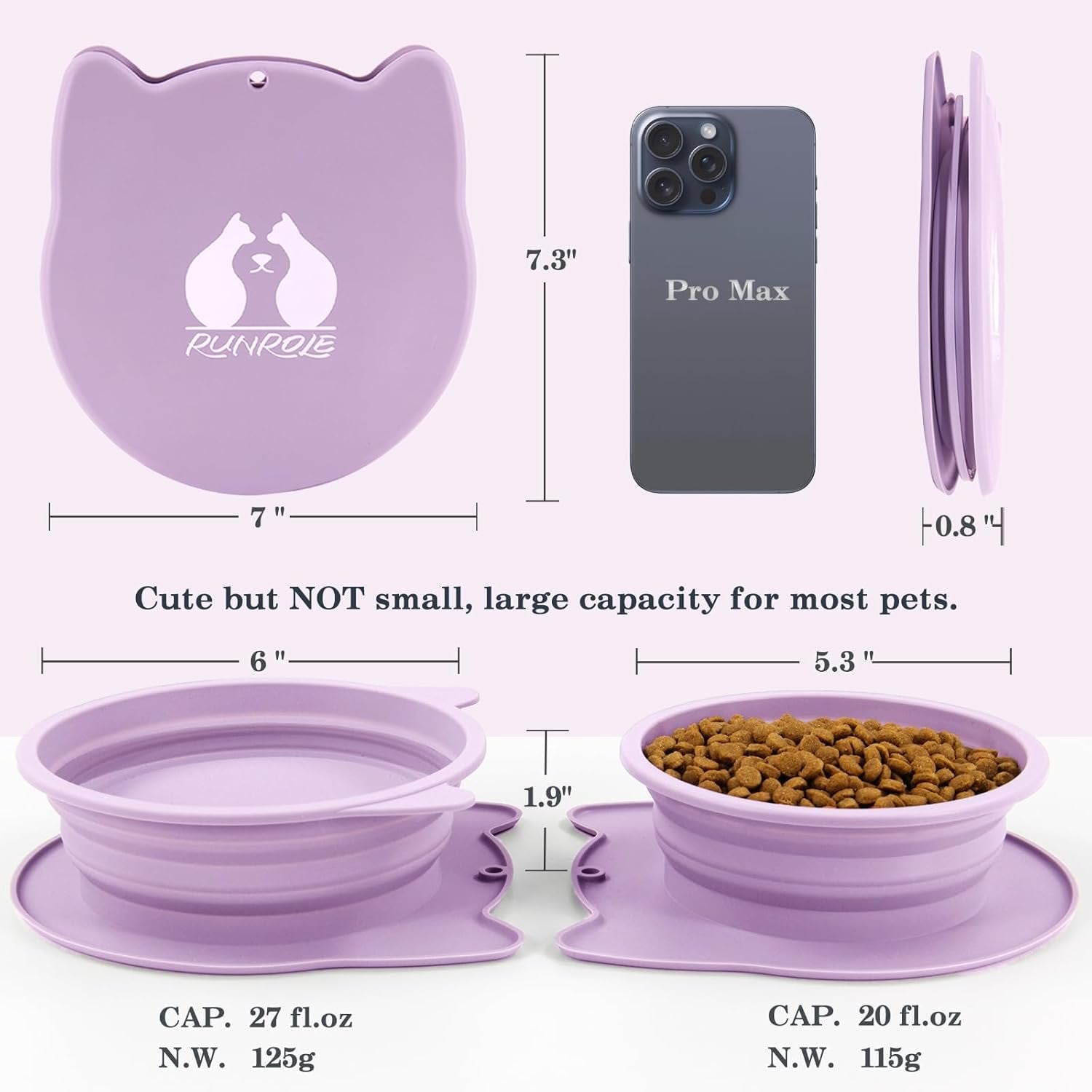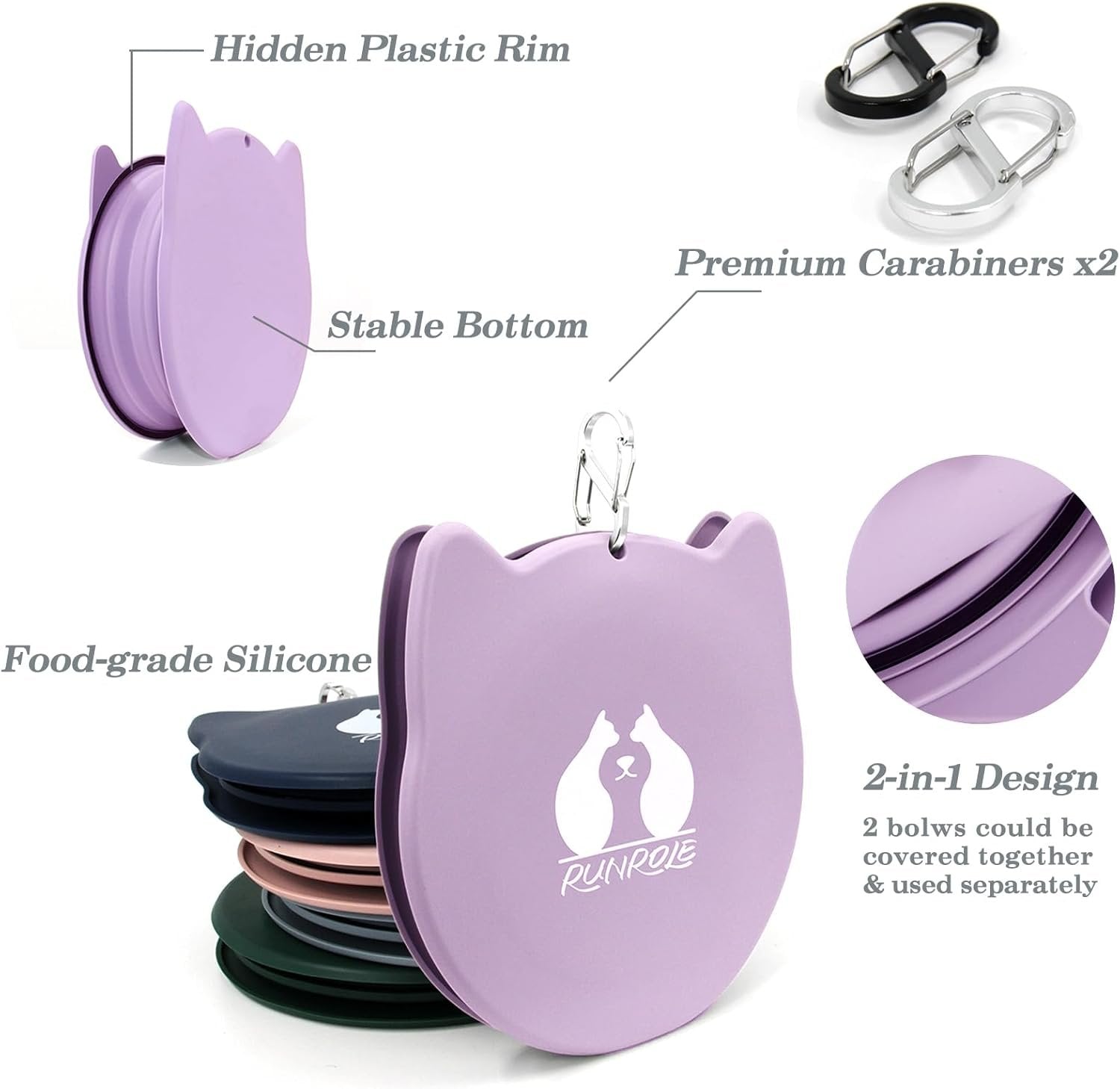 RUNROLE 2-in-1 Collapsible Silicone Dog Travel Bowls, Slot Together and Use Separately, Portable Pet Food Water Bowls, Foldable Cat Feeding Watering Dishes, 20OZ+27OZ(Purple)