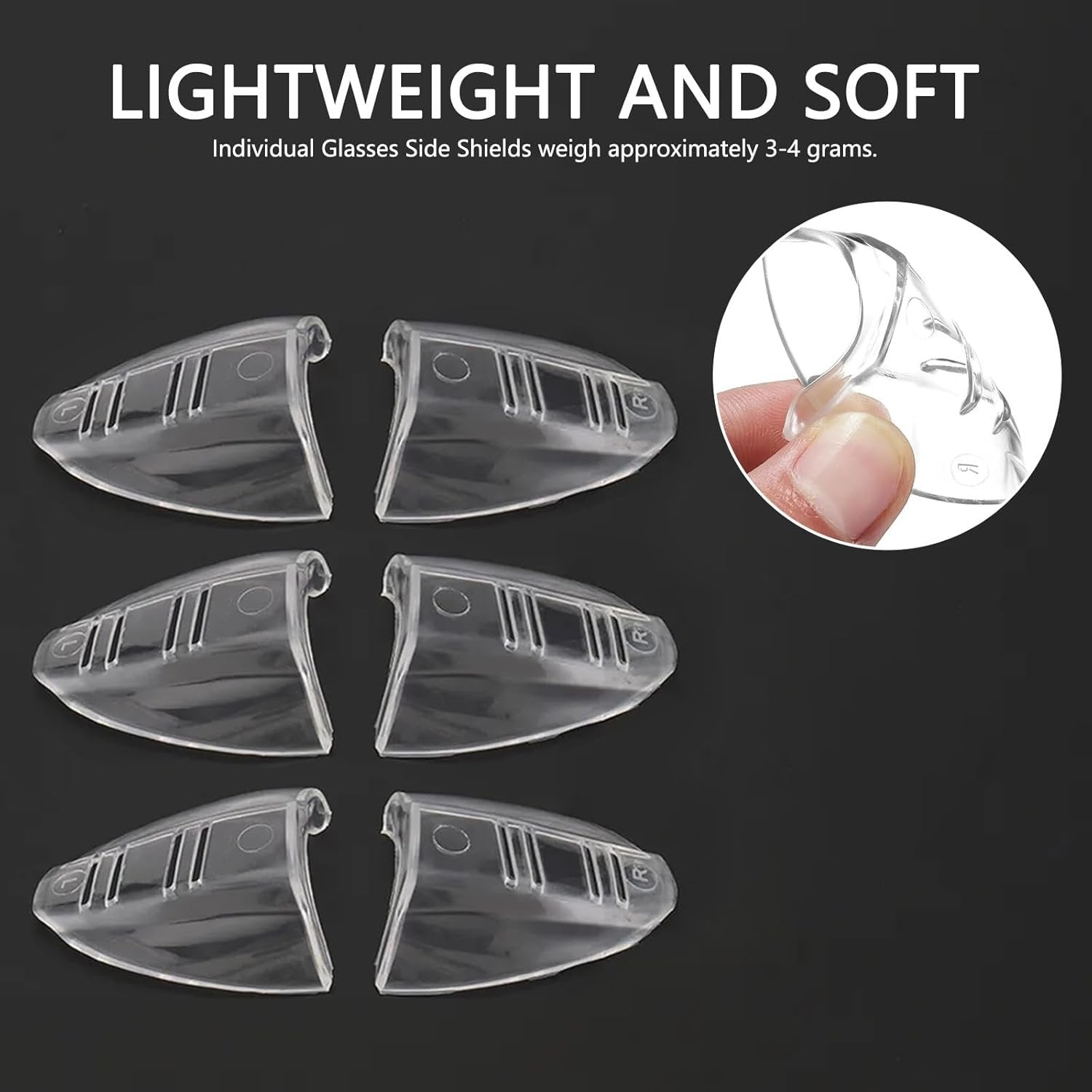 Safety Glasses Side Shields, 3 Pairs Eye Protection Flexible Anti Slip on Clear Side Shield, Side Shields for Glasses Fits Small to Medium Eyeglasses