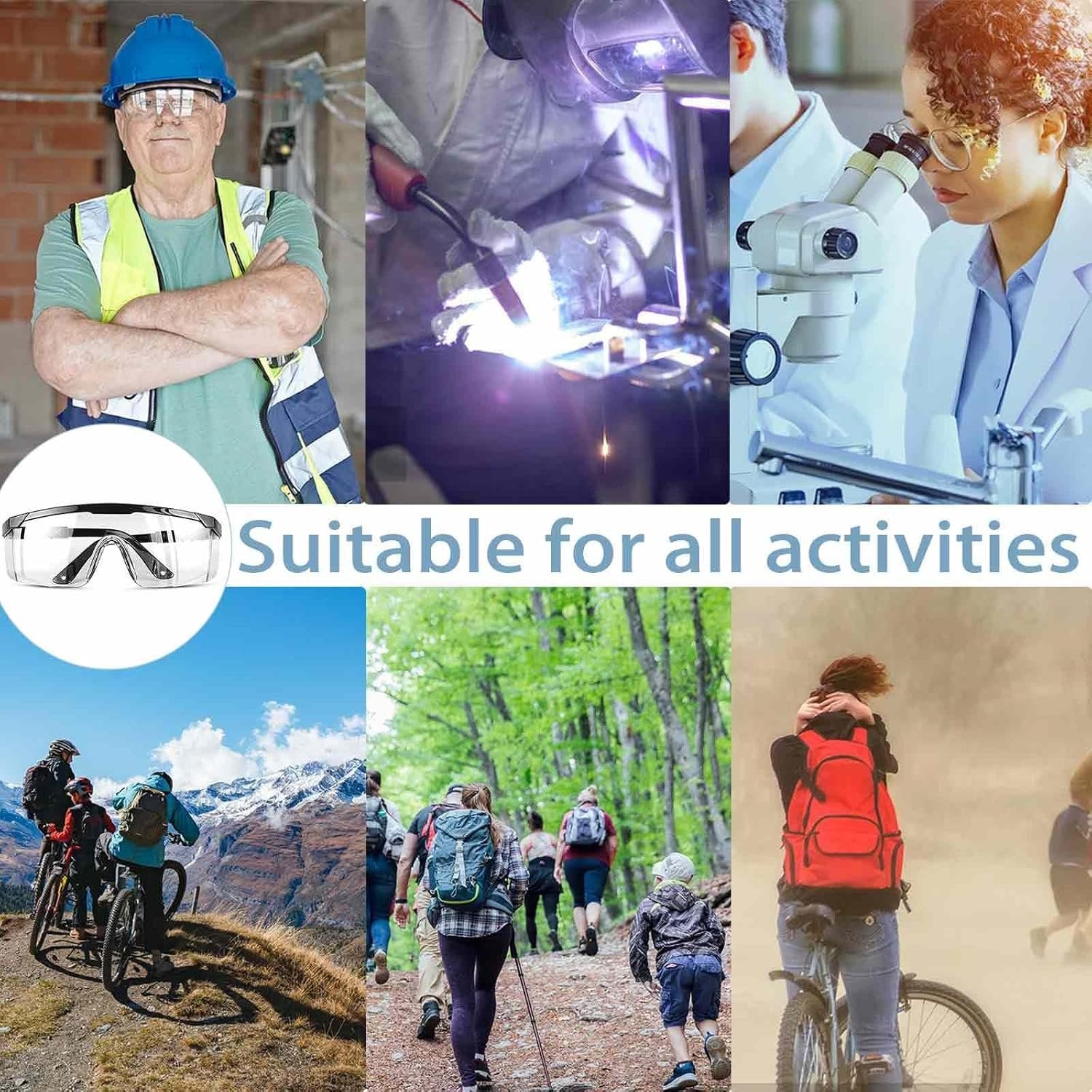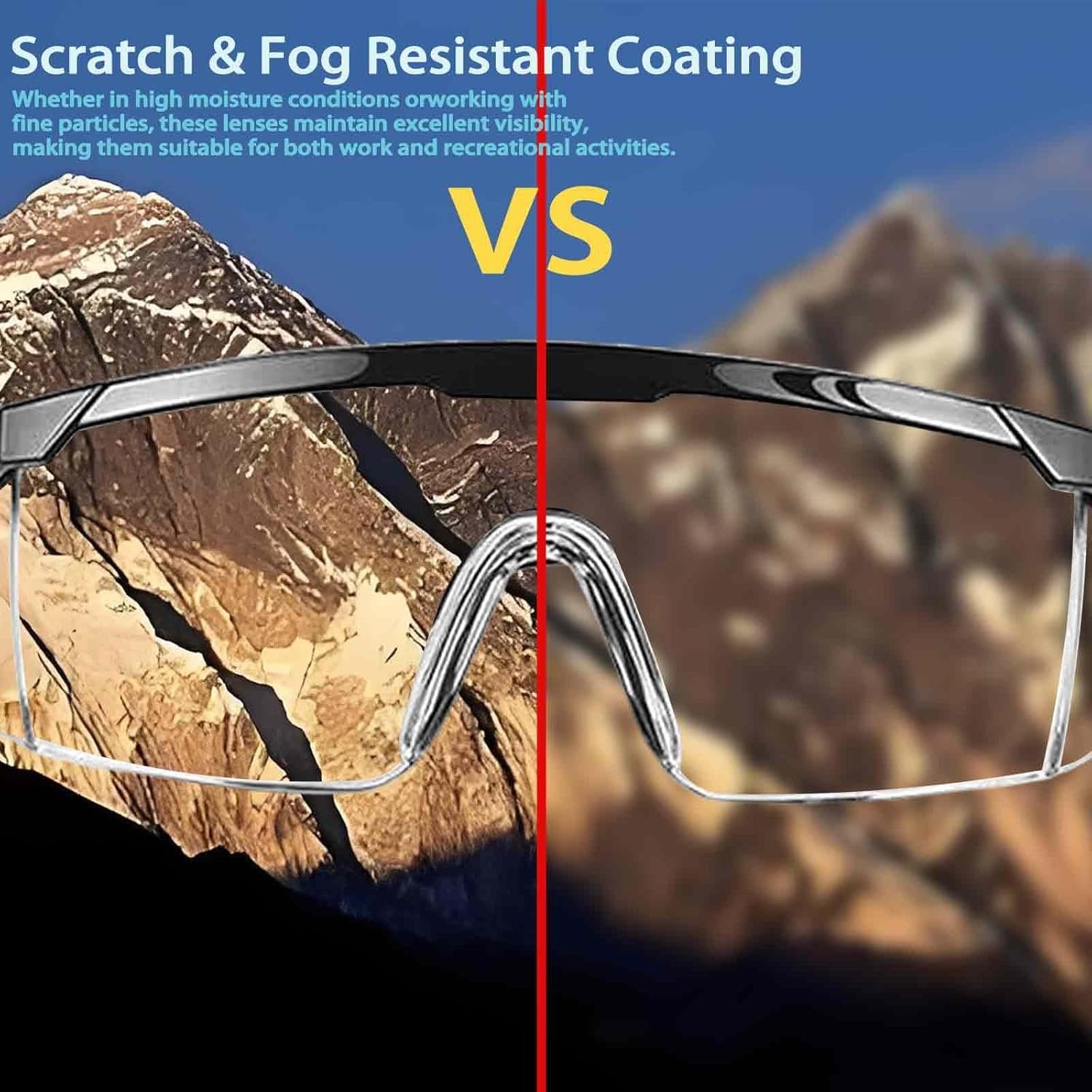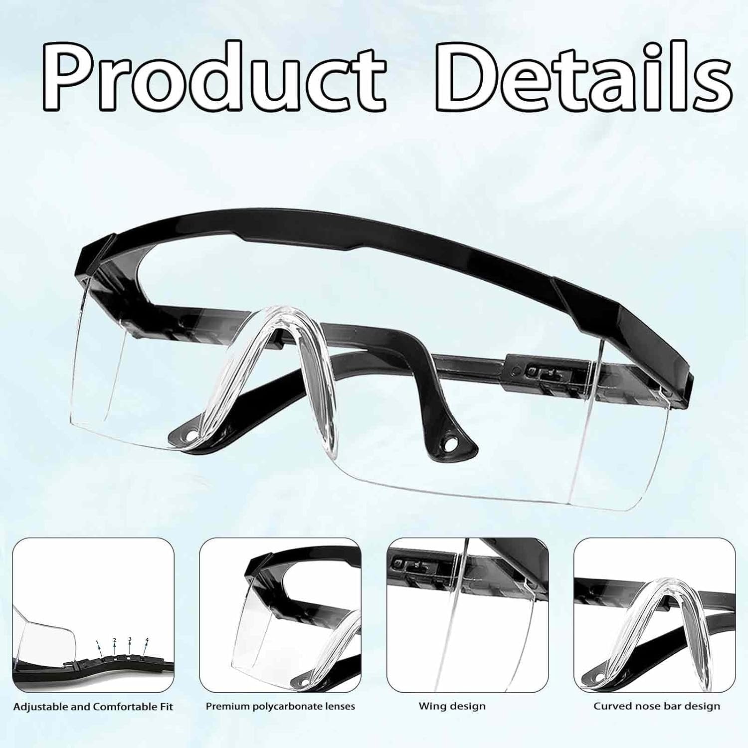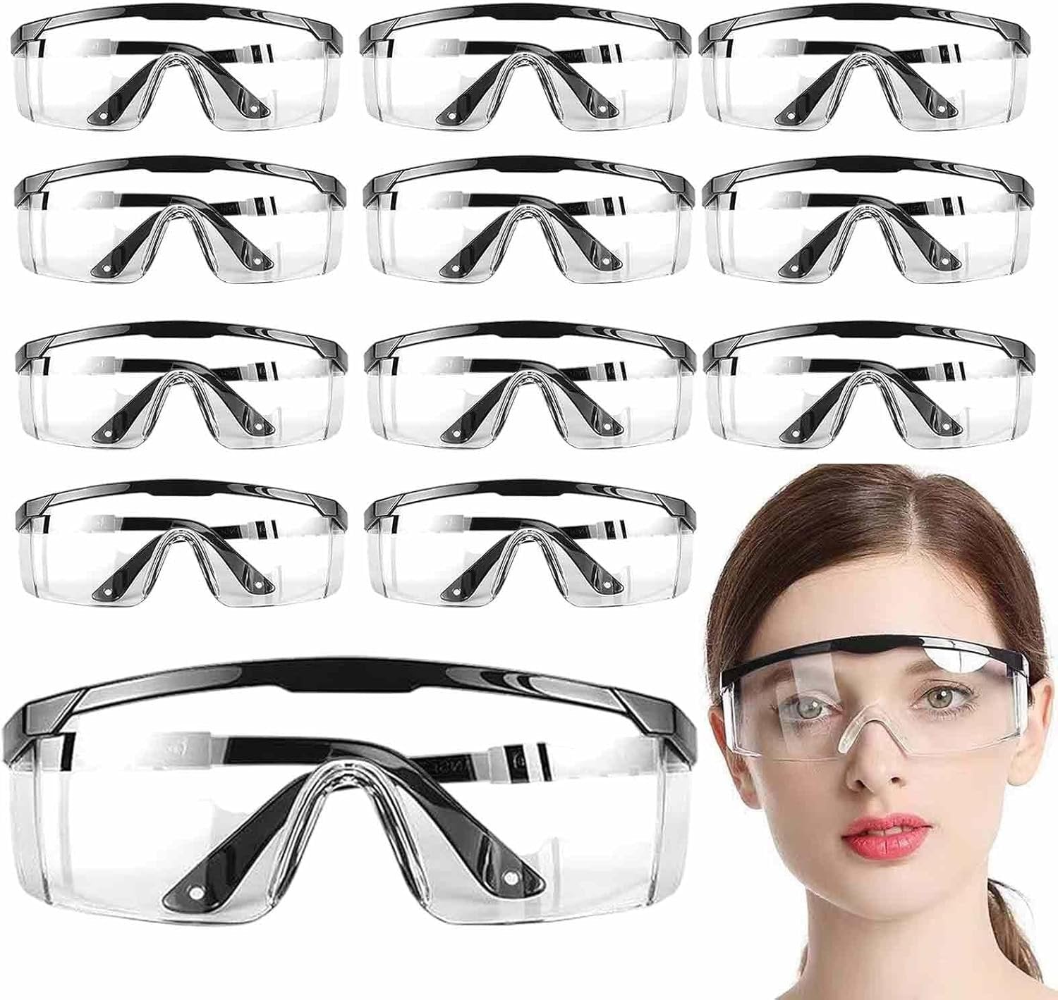 Safety Glasses with Adjustable Strap and Side Shields, 12 Pairs, Clear Lens, Scratch & Fog Resistant, Polycarbonate, Black Frame