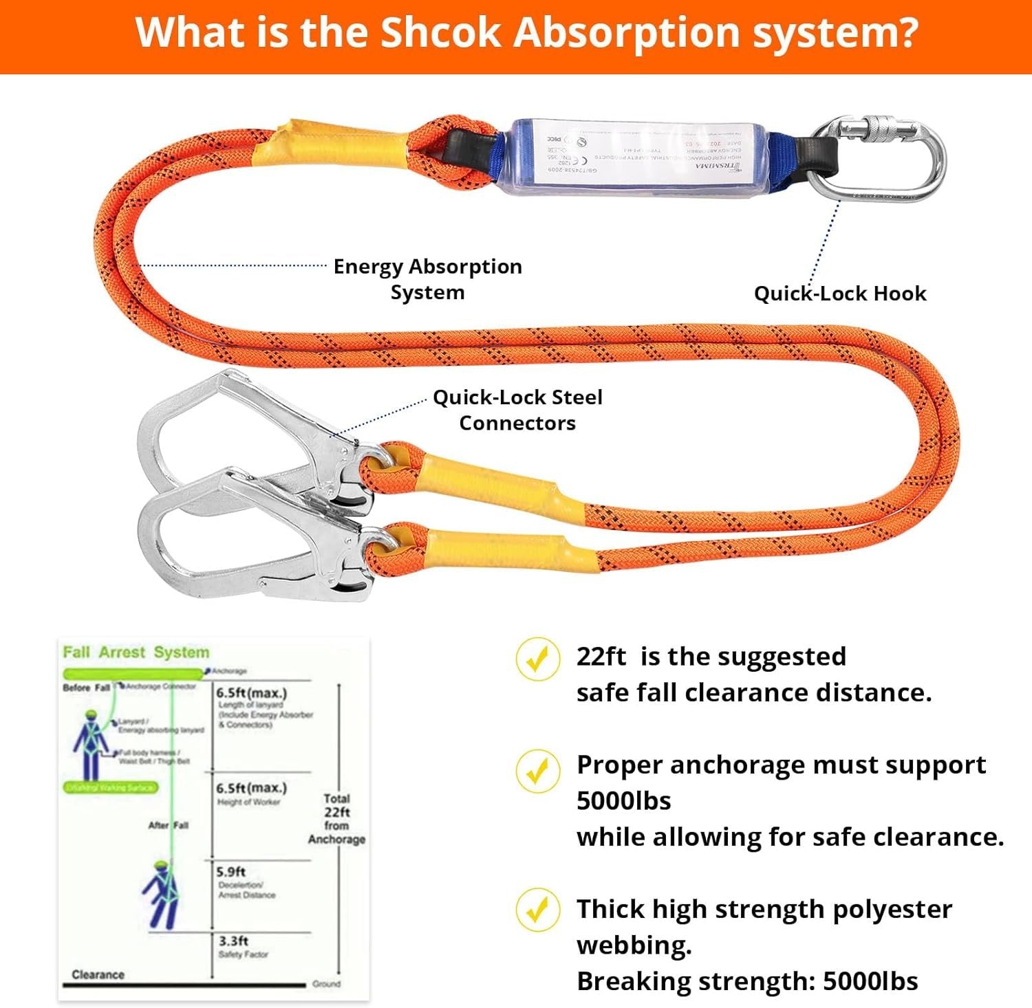 Safety Harness Fall Protection Kit: Full Body Roofing harnesses with Shock Absorbing Lanyard - Updated Comfortable Waist Pad