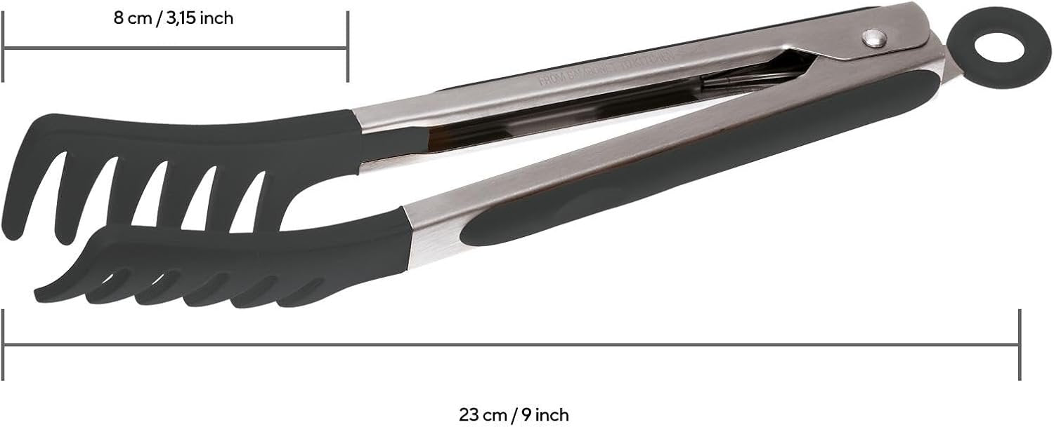 Sambonet Gadgets 18/10 Stainless Steel and Silicone Spaghetti Server Tongs Dishwasher Safe 23cm Black