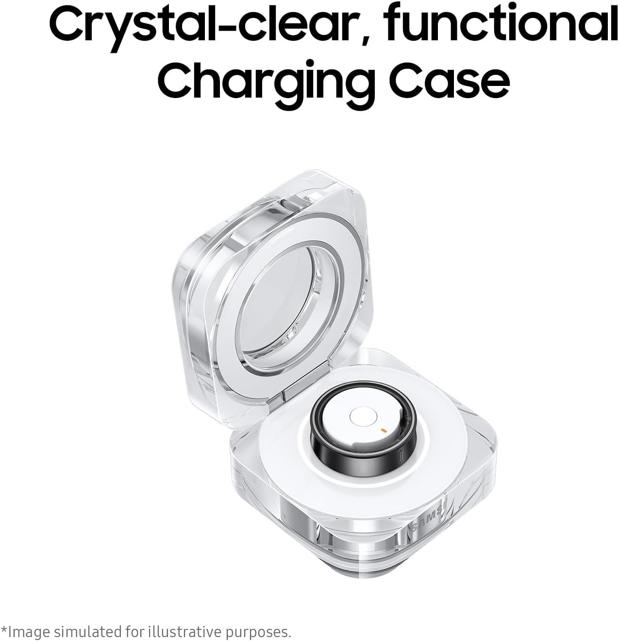 Get started with your Samsung account Your health data on your Galaxy Ring will be safely transferred and stored in the Samsung Cloud connected to your account, so you can fully access and manage your data. Battery that lasts up to 7 days Put on your Galaxy Ring to go to work, to the gym, to bed and repeat all over again without having to charge the battery. Galaxy Ring works day and night with a battery that lasts up to 7 days on a single charge. AI powered health tracker on your finger The more you wear your Galaxy Ring, the smarter it gets. Slip Galaxy Ring on your finger and let it track your health all day. Then, check the Samsung Health app to see the comprehensive health report Galaxy AI put together. Crystal clear, functional Charging Case The Charging Case has a light around the Multi purpose button that indicates the battery charging level. You can also charge the Charging Case wirelessly, so simply place Galaxy Ring in its case, and place it on a wireless charging pad for easy charging.