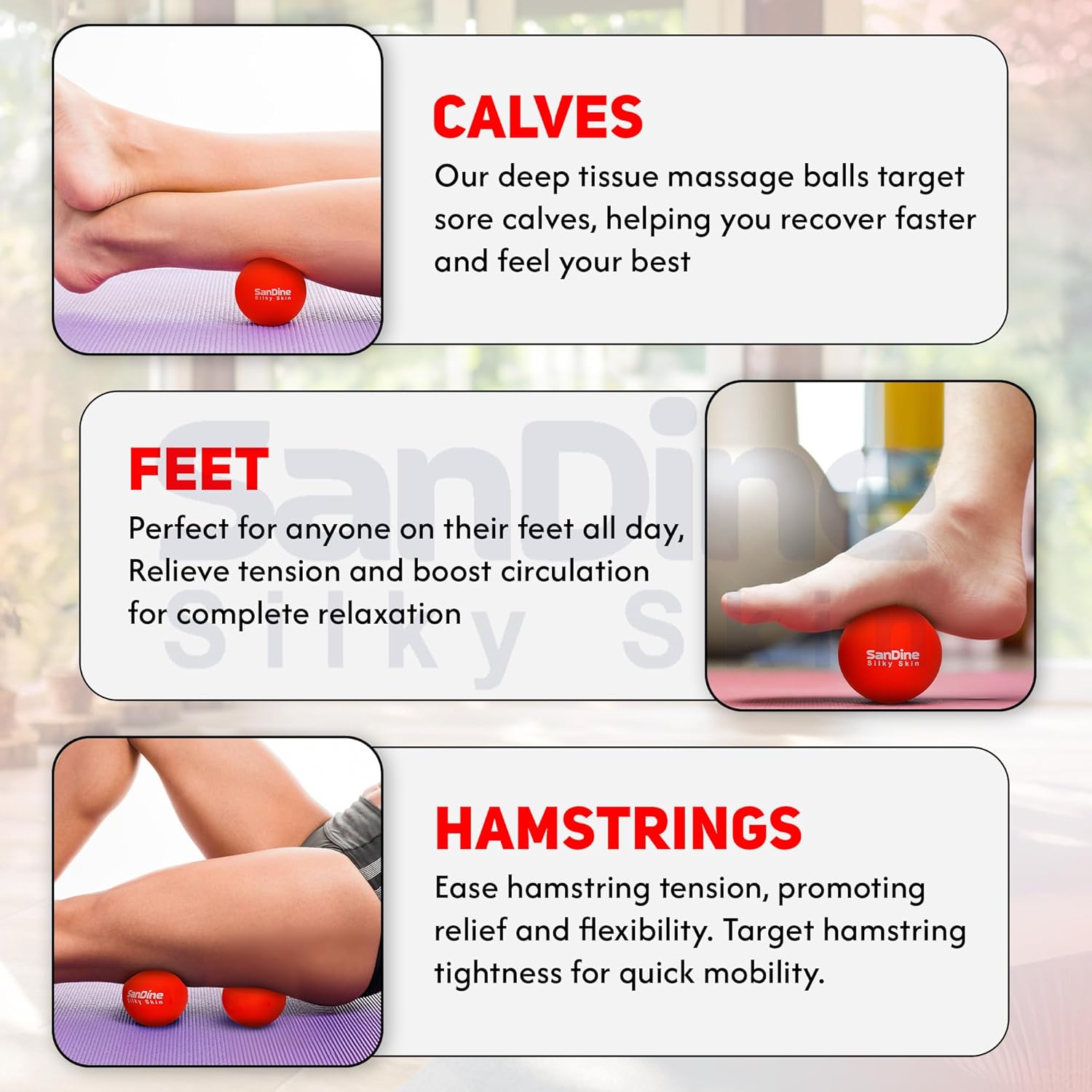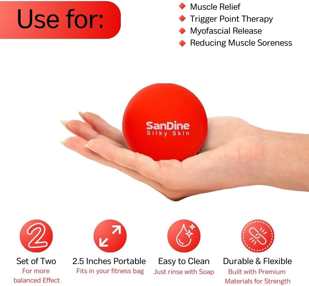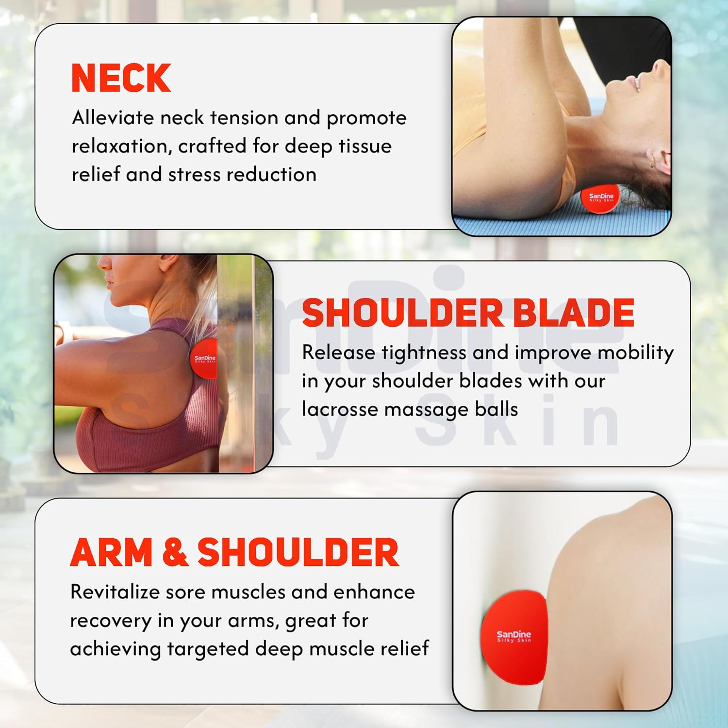Sandine Lacrosse Massage Balls for Deep Tissue Massage, Relieve Muscle Tension and Pain, Improve Flexibility, Ideal for Trigger Point Myofascial Therapy
