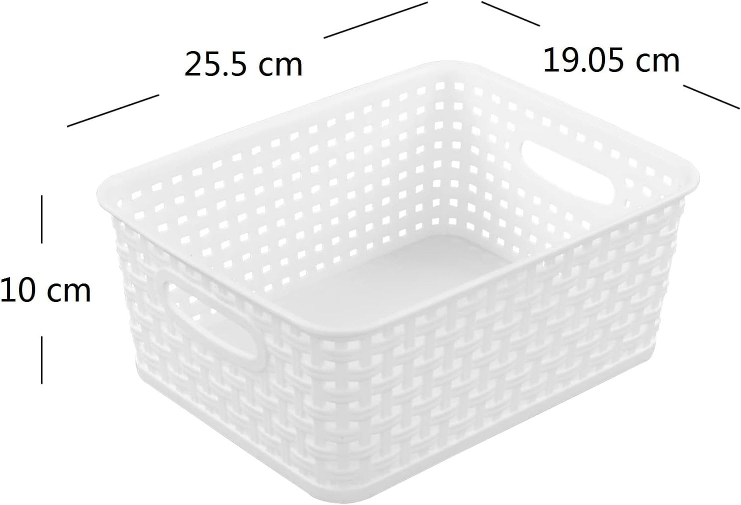 Sandmovie White Rectangle Plastic Storage Baskets, 6 Packs
