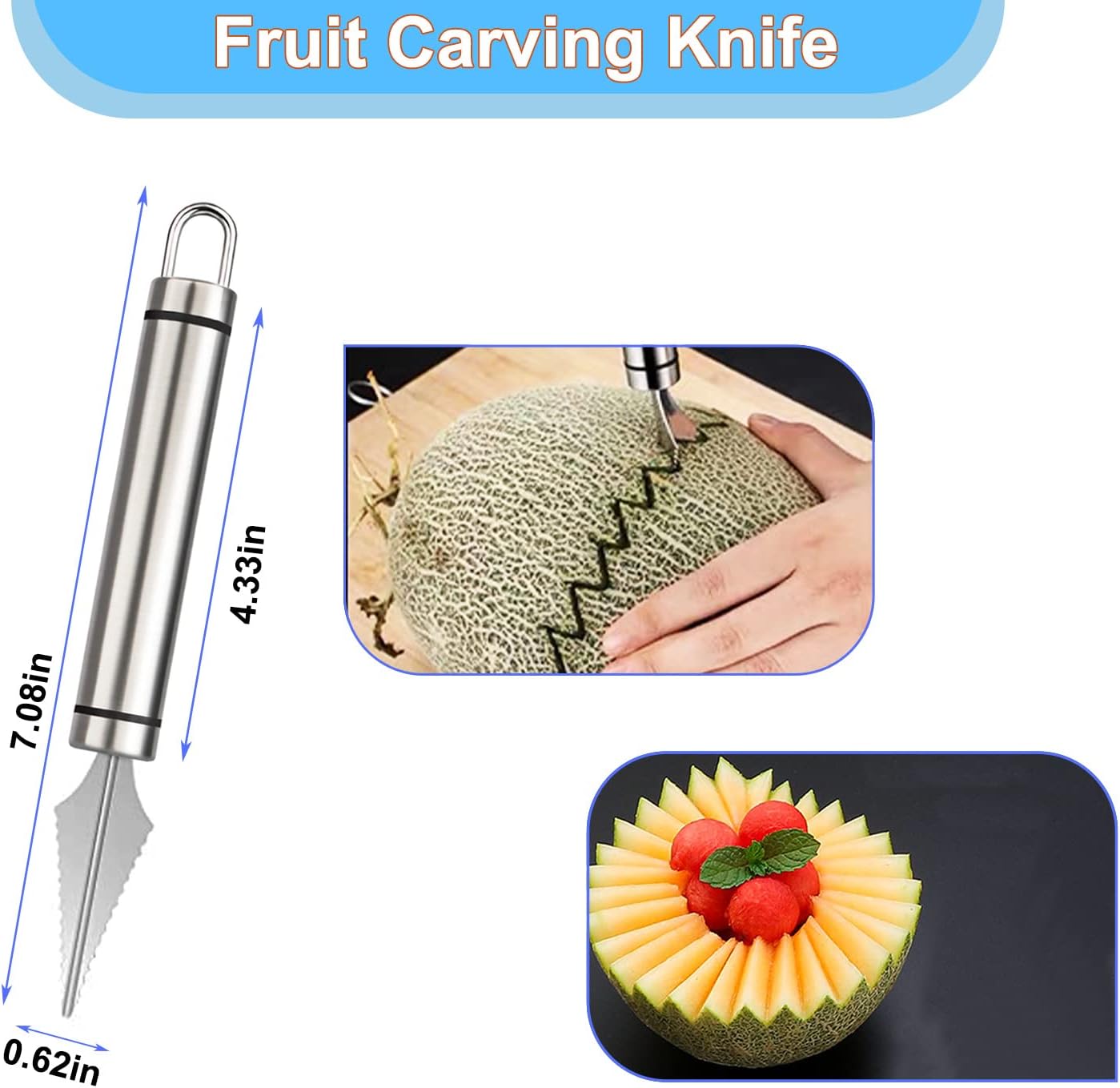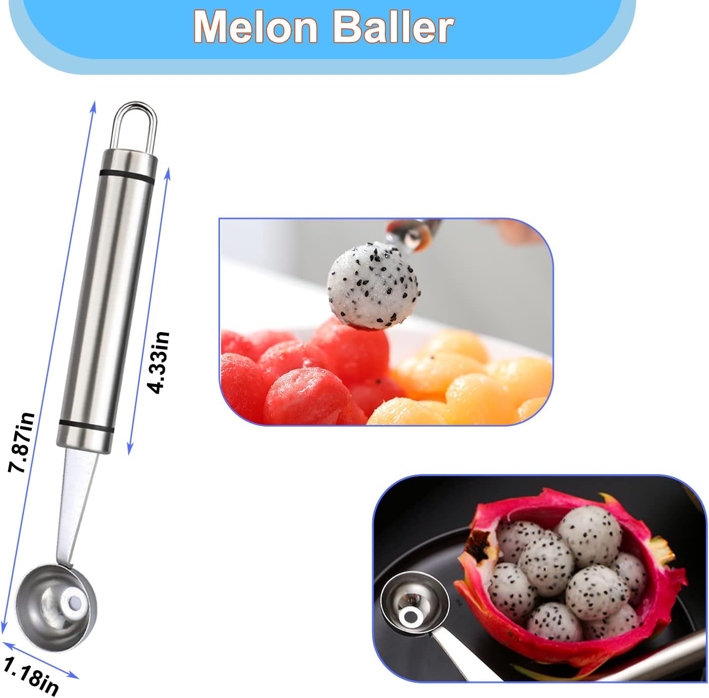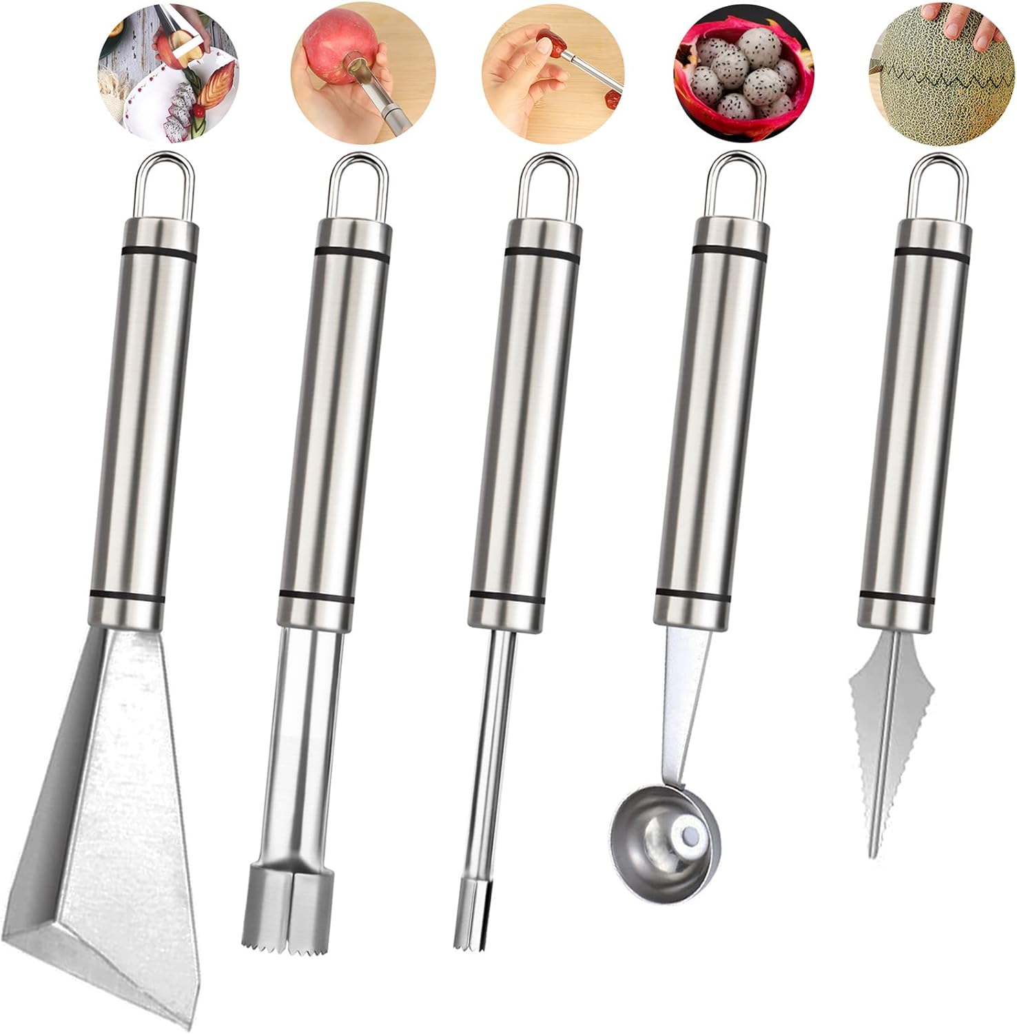 SanKitc 5 Pcs Melon Baller Scoop Set - Stainless Steel Kitchen Gadgets With Carving Tool, Scoop, Apple Corer and Cherry Corer