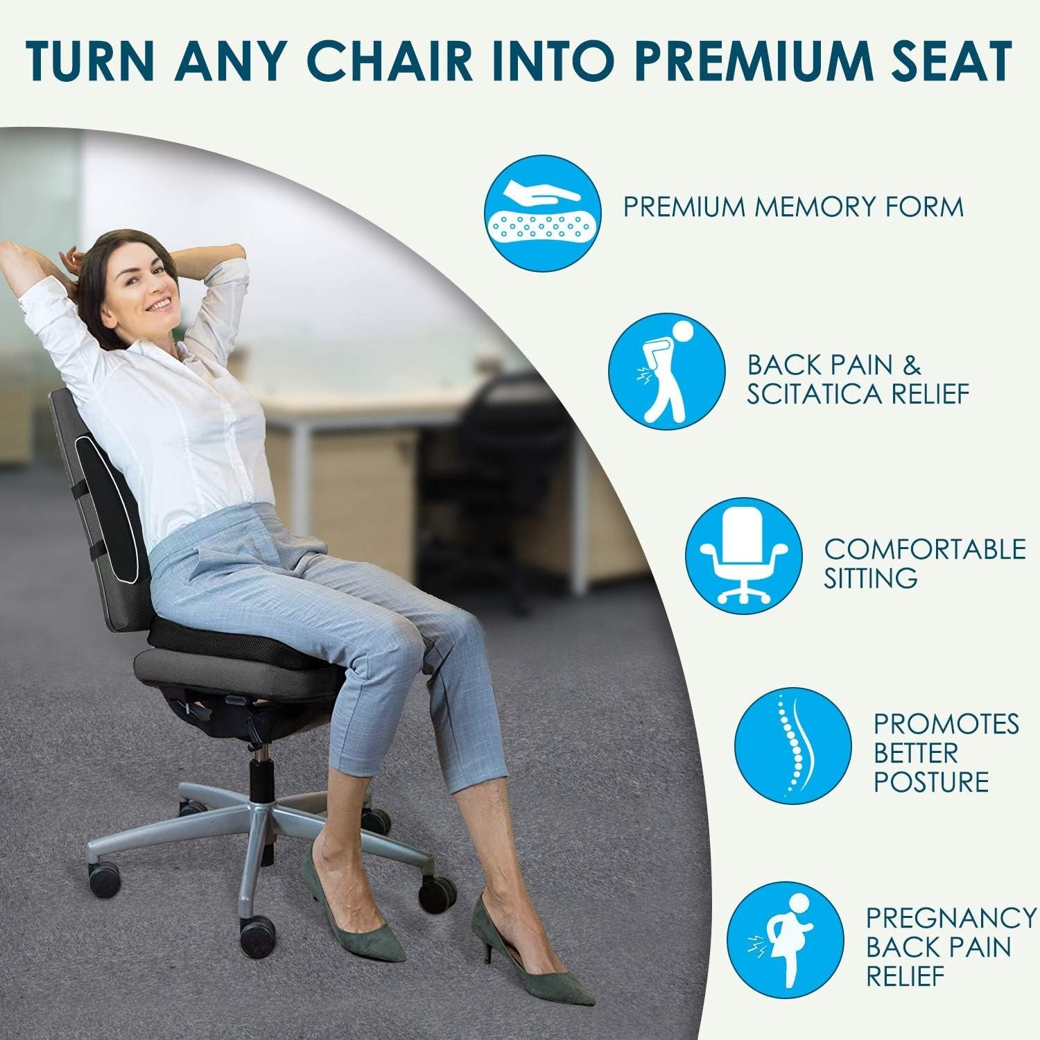 Seat Cushion and Lumbar Support Pillow for Office Chair-Gel Infused,Coccyx Orthopedic Car Seat Cushion Memory Foam Back Support Cushion for Lower Back,Tailbone & Sciatica(Black)