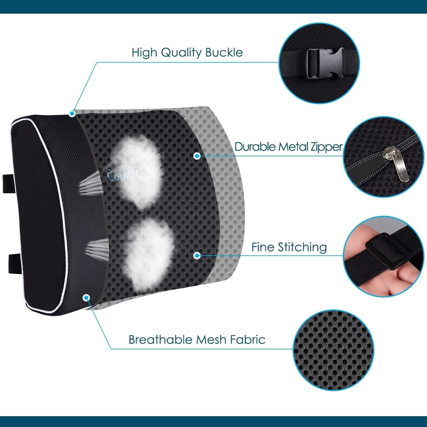 ❤【Upgraded Memory Foam Cushion Set】FIRM Kmall office chair cushion and lumbar support pillow for car are made of premium memory foam formula with gel particles infused,NO ODOR and NEVER GO FLAT,firm and supportive, allowing for better posture when sitting down for long time. You can focus on the work task with our seat cushions for office chairs instead of paying more dollars and time on searching new ergonomic chairs!work from home essentials. 🌈【Coccyx Cushion for Tailbone】We take ergonomic design as the concept of research and development, comprehensive care of the human tailbone and lumbar health. Kmall desk chair cushion adopt U-shaped design by alleviating pressure on the coccyx / tailbone and support sciatica, tailbone injury, Hip discomfort, back, herniated discs,etc.The sciatica pillow for sitting is good home&office accessories,Best back support and tailbone cushion. 💺【Office Chair Back Support Pillow】With contoured shape,the Lumbar support pillow for office chair alleviates from a greater surface area, including stiffness and tension in the upper, mid and lower back,muscle aches. Use our chair back pillow for office chair to create a supportive posture setup that cradles the lumbar area to provide long lasting comfort while driving your car or sitting in an office chair. ❤【Specially Designed for You-Sciatica Pillow】Non-slip bottom on the seat pad to ensure it stay firmly positioned in a seat. Two Adjustable Straps keeps the back support cushion in place and prevent the lumbar pillow from sliding down. ❤【Car Seat Cushions for Driving】Road trip essentials for adults! The breathable mesh cover of Kmall memory foam seat cushion and low back support pillow keeps air circulating and prevent discomfort from accumulated heat,keep your back cool on hot days or during long road drives,perfect size and thickness for everyday use. ❤【Portable Seat Cushion for Tailbone 】The portable handle on the seat pillow allows you to easily switch between home and office.Used together or separately, the ergonomic seat cushion for hip and back can be adapted to various types of seats,suitable for drivers, teachers, students, people with wheelchair, pregnant women, office workers, etc.ADD the Car seat cushion and chair lumbar support pillow to your cart now !