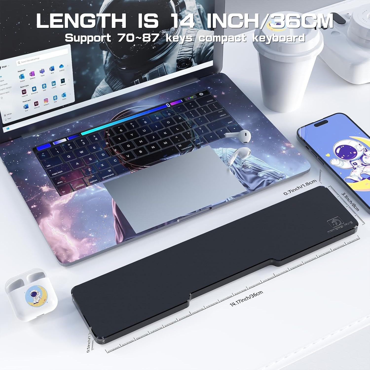 【Premier Clear Acrylic】This keyboard wrist rest is made of premium acrylic, which is durable and easy to clean. The keyboard wrist support is carefully polished through multiple processes, and the surface has a matte texture, which makes this hand support is more advanced. The black acrylic keyboard wrist rest pad can be matched with various keyboards, making your desktop visually neat and elegant. 【Ergonomic Wrist Rest Pad】1cm to 1.5cm slope height design, ergonomic layout. By optimizing the hand position and distributing the palm pressure, it can effectively reduce the fatigue of typing or gaming for a long time, enjoy a more comfortable typing experience, and reduce wrist soreness. Designed for wrist care, this ergonomic laptop wrist rest is an essential addition to your desk. 【Different Dimension For Your Choice】There are several sizes are selectable for whether 61 keys mini 60% keyboard; 68 keys compact 65% keyboard; 87 Keys TKL 80% keyboard or standard 104 keys full size 100% keyboard. The lengths are 31-33-36-42cm respectively. The width and height are 8cm and 1.5cm respectively. 【Rubber Anti-slip Foot Pad】Anti-slip rubber base can provide heavy grip and prevent the keyboard wrist support from sliding or moving accidentally while typing. Even on smooth desktops, it can firmly fit the desktop, not easy to slip off, and provide more stability for the wrist rest. 【Use In Multiple Scenarios】Suitable for gaming keyboards, laptops, ipads and other devices of various sizes, reducing the friction between your hands and the desktop, providing you with the best experience support for typing or playing games! It is the best choice for home and office!