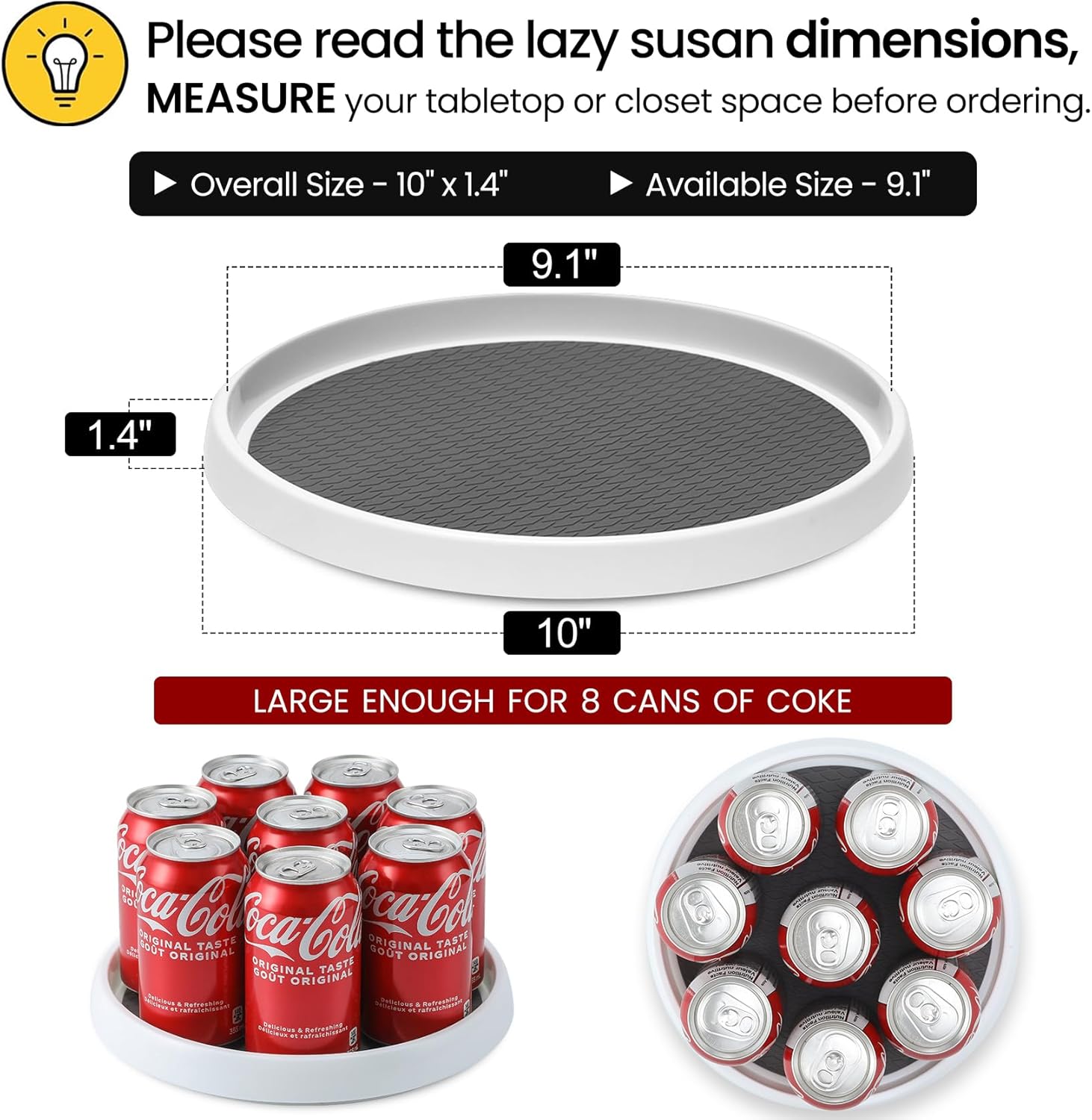 Set of 4, 10 Inch Non-Skid Lazy Susan Organizers - Turntable Rack for Cabinet, Pantry Organization and Storage, Kitchen, Fridge, Bathroom Makeup Vanity Countertop, Under Sink Organizing, Spice Rack