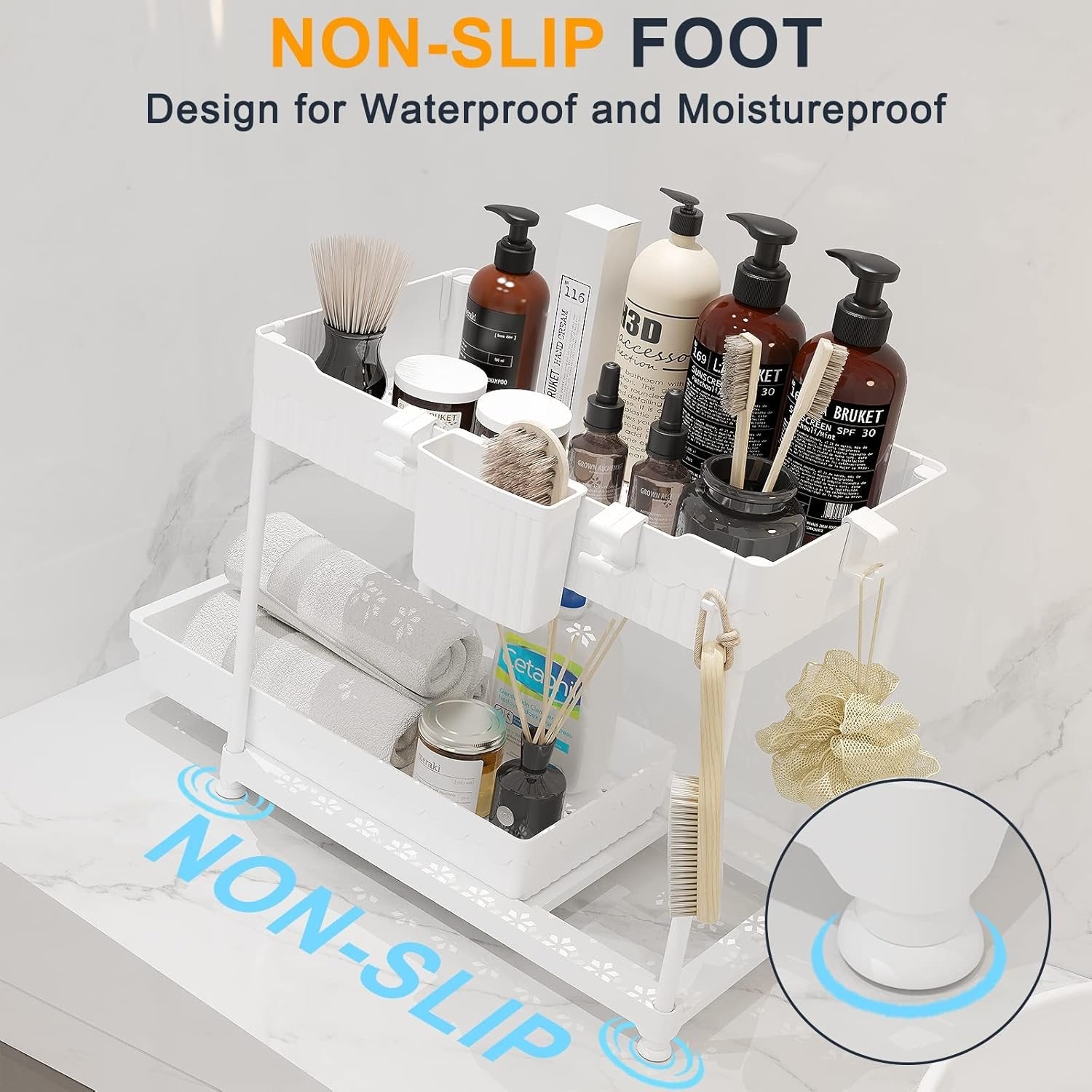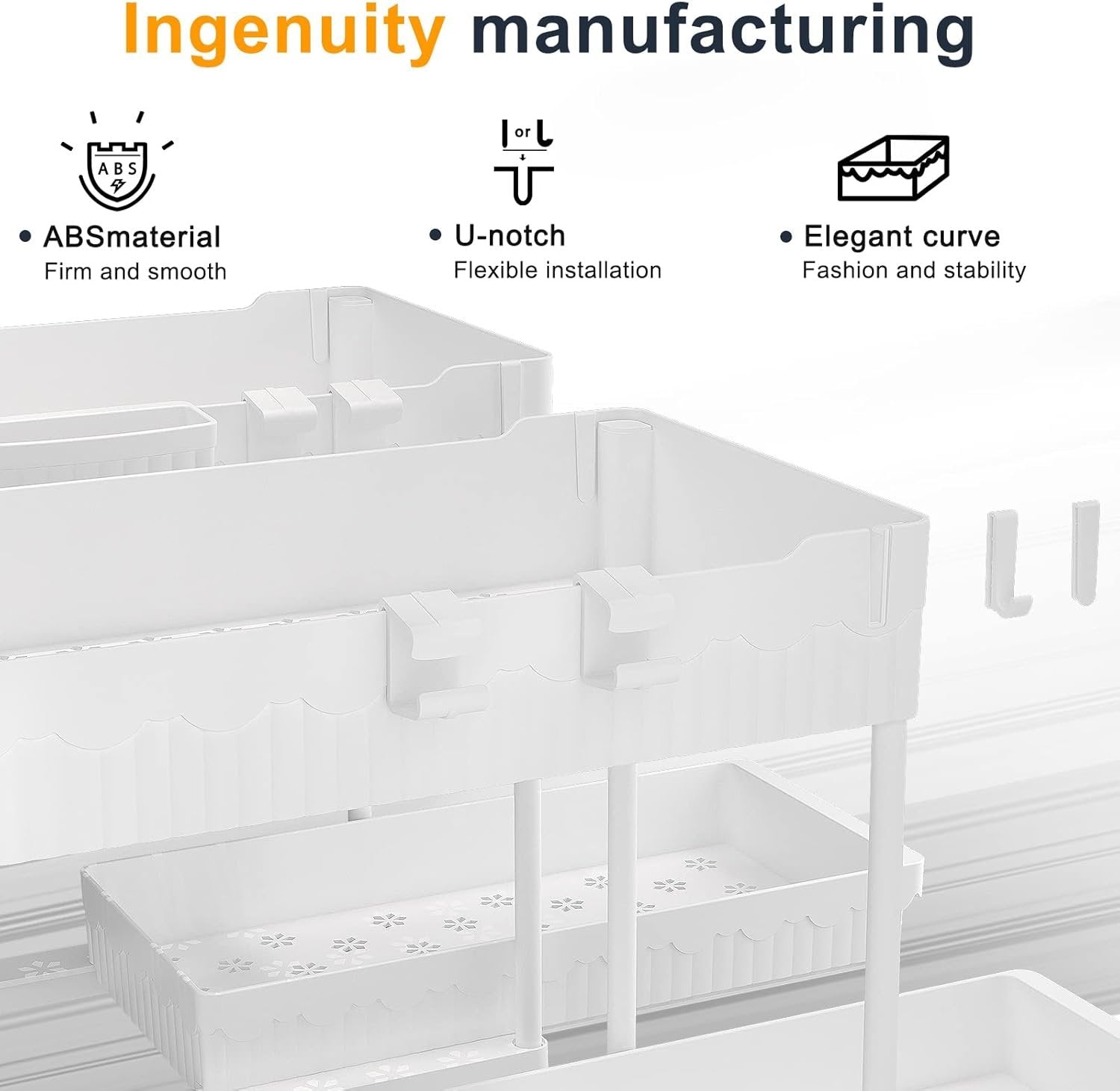 Sevenblue Under Sink Organizer and Storage, 2 Tier Sliding Bathroom Organizers, Multi-Use Under Sink Organizer for Bathroom and Kitchen (Plastic)…