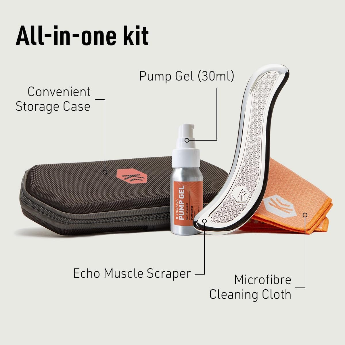 Sidekick Echo Muscle Scraper - Steel Gua Sha Tool w/Patented Textured Grip – Full Kit Included – Designed for IASTM to Relieve Neck, Shoulder, Back and Muscle Pain