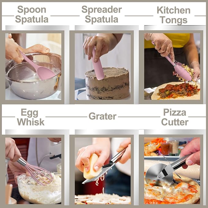 Silicone Cooking Kitchen Utensil Set, AIKKIL 43 Pcs Pink Cooking Utensils Set, Turner, Tongs, Spoon, Spatula, Kitchen Gadgets Tools Set For Nonstick Cookware, Heat Resistant (Dishwasher, BPA Free)