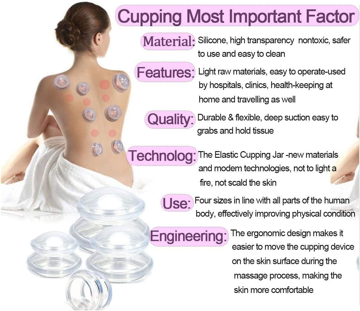Silicone Cupping Set - Chinese Therapy Massage Suction Cups for Muscle Soreness, Pain Relief, Injury Recovery, Toning & Cellulite,Weight Loss Transparent (6 Cups)
