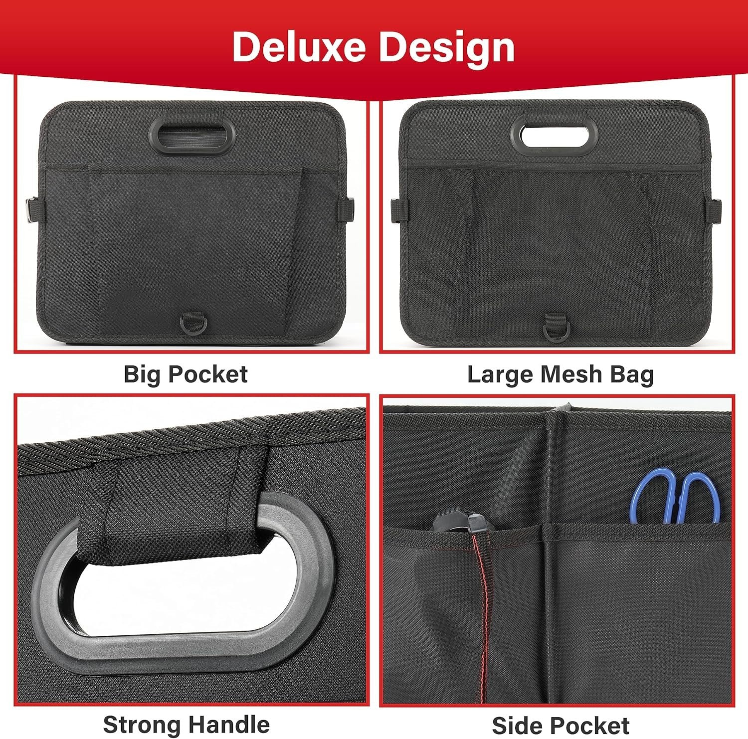 Simple Deluxe Car Trunk Organizer, Multi Compartments Collapsible Trunk Storage, Anti-slip, Waterproof 600D Oxford Polyester, with Adjustable Straps for SUV, Minivan, Truck, Large Size, Black