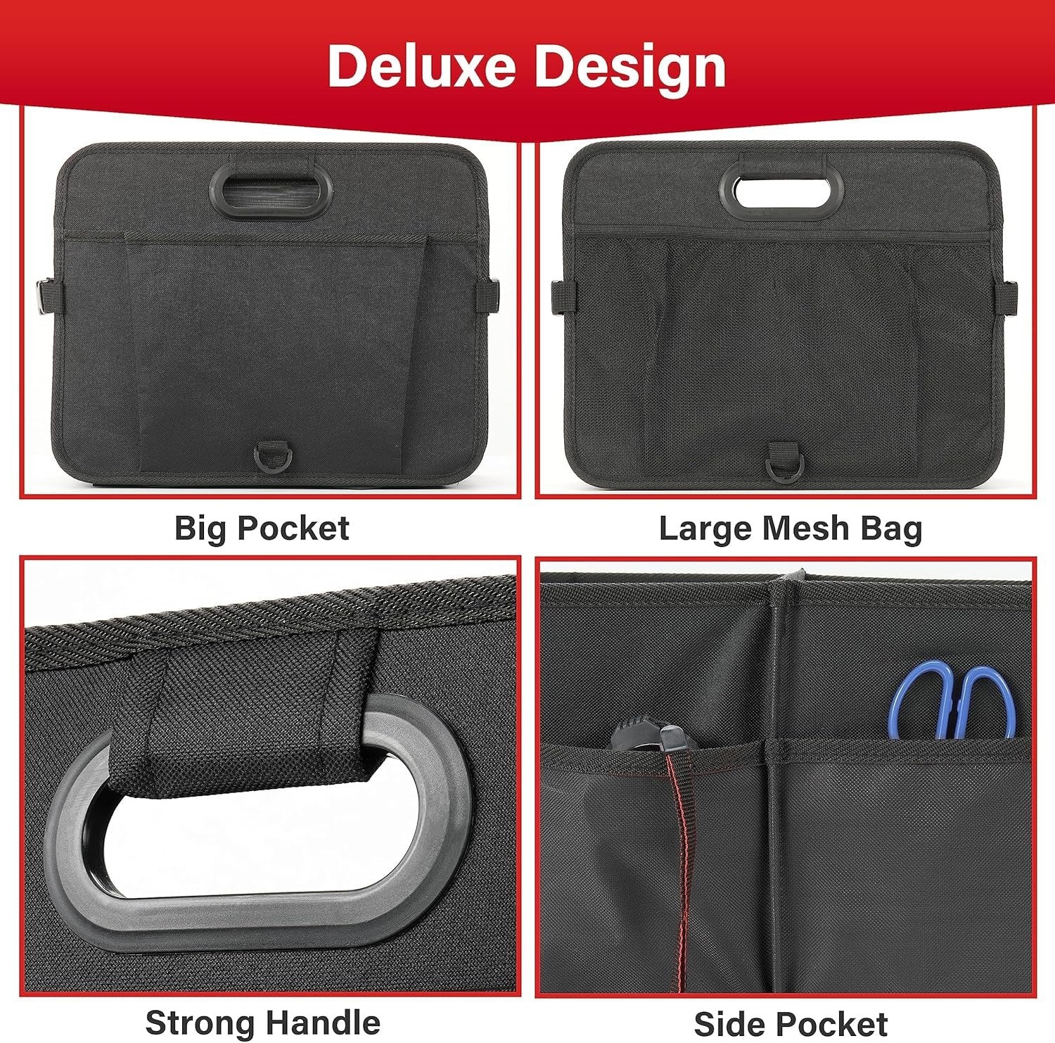 Simple Deluxe Car Trunk Organizer, Multi Compartments Collapsible Trunk Storage, Anti-slip, Waterproof 600D Oxford Polyester, with Adjustable Straps for SUV, Minivan, Truck, Large Size, Black New