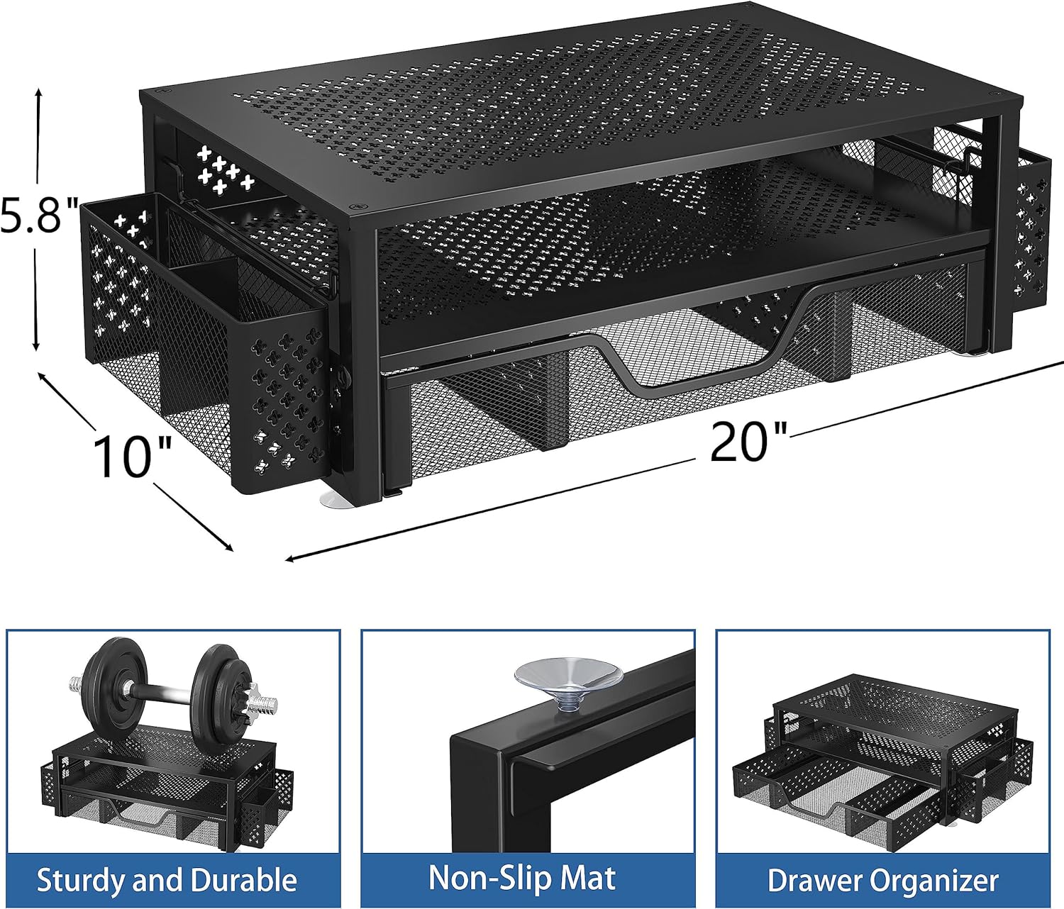 Simple Trending 2 Tier Metal Monitor Stand Monitor riser and Computer Desk Organizer with Drawer and Pen Holder for Laptop, Computer, iMac, Black