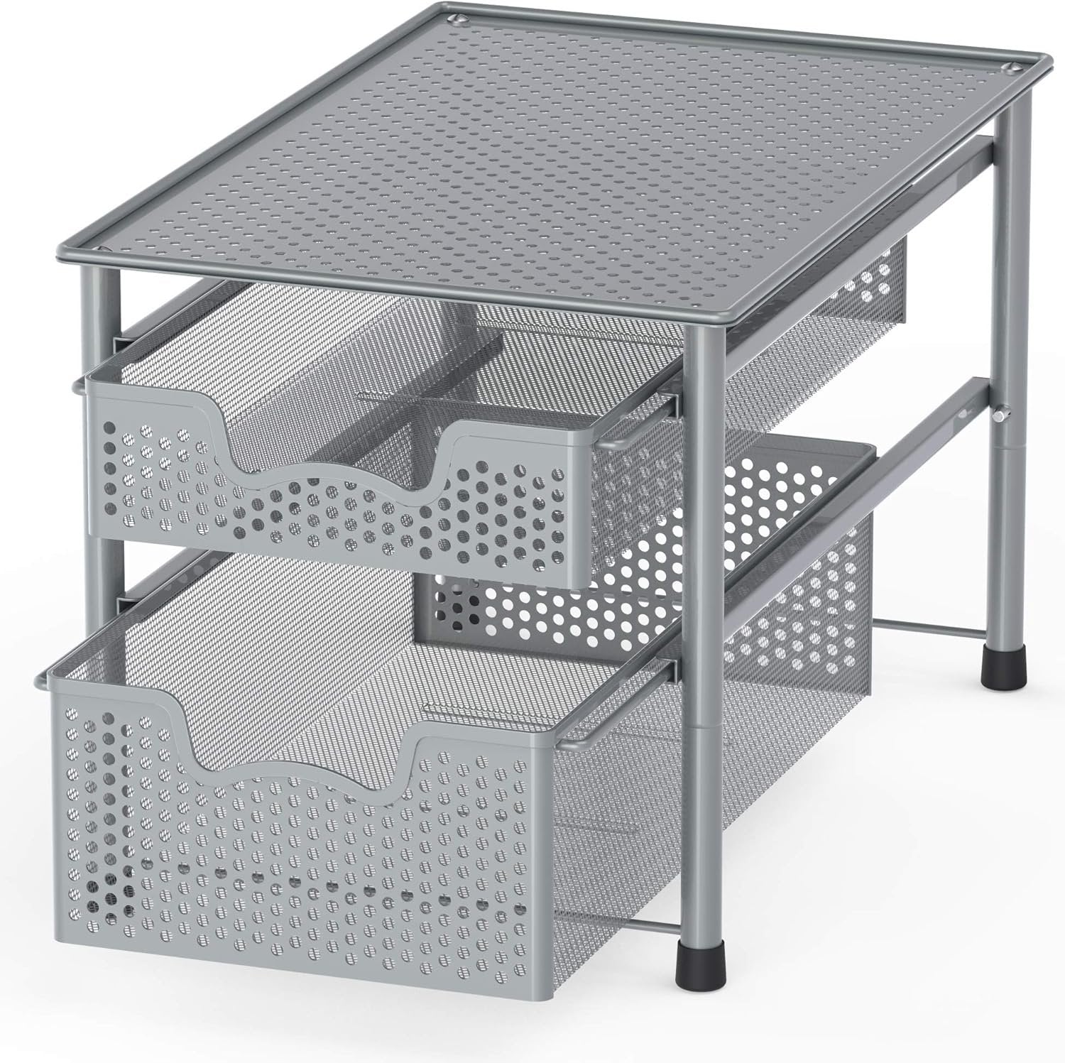 SimpleHouseware Stackable 2 Tier Sliding Basket Organizer Drawer, Silver