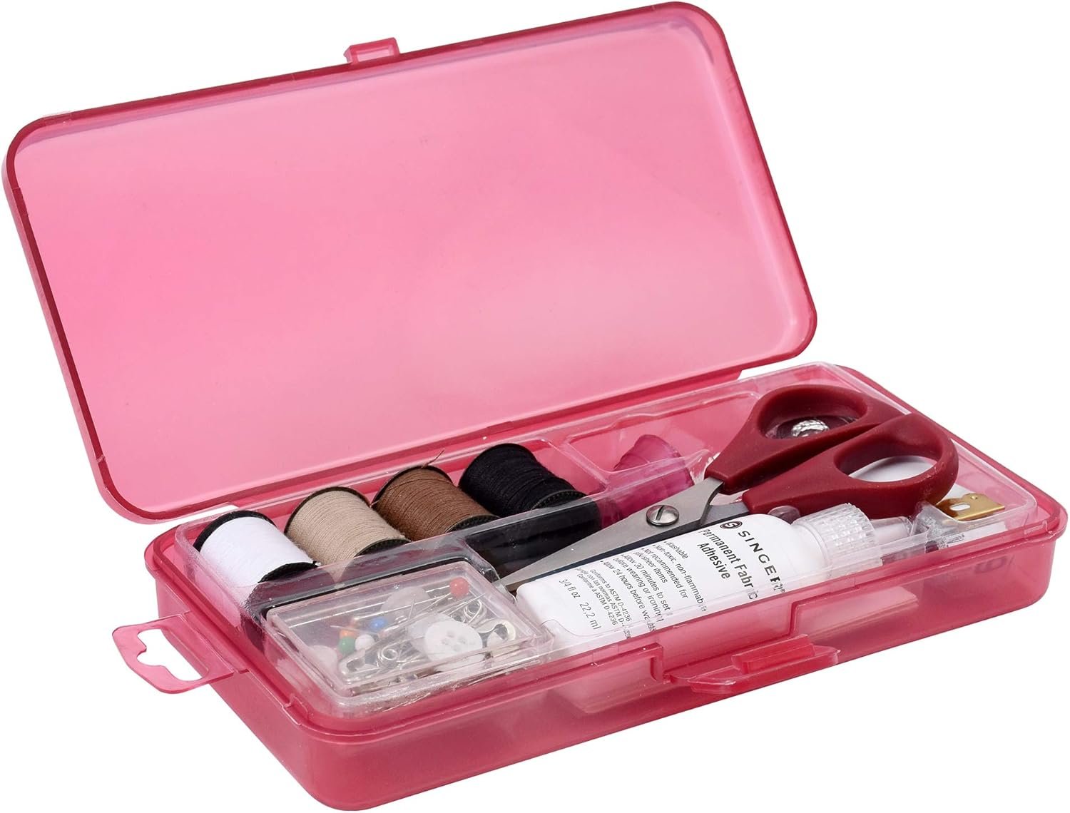Always Be Prepared: This 64-piece sewing toolkit fits perfectly into your backpack, duffle bag, or glove compartment, making it a must-have for travelers, college students, busy parents, outdoor adventurers, and those keen on emergency preparedness. Travel Sewing Kit: Compact yet comprehensive, this kit fits effortlessly into luggage, backpacks, and glove compartments. Say goodbye to fashion mishaps even when you're miles away from the nearest tailor. *Note: Does not meet TSA requirements for carry-ons. Multipurpose Toolkit: Featuring an array of versatile sewing and mending items, including scissors, skin and fabric-friendly adhesive tape strips, fabric glue, a multi-unit tape measure, marking pencils, a sturdy thimble for added safety, and an assortment of pins and needles for different fabric types. Diverse Thread Choices: Stocked with 4 small spools that offer 25 yards per spool of 100% polyester thread in assorted colors, this kit ensures you're ready to tackle any fabric fix. Easily Organized: Housed in a transparent, durable pencil case available in either blue, red, or green, this mini sewing kit offers quick visibility and easy storage of your sewing notions.