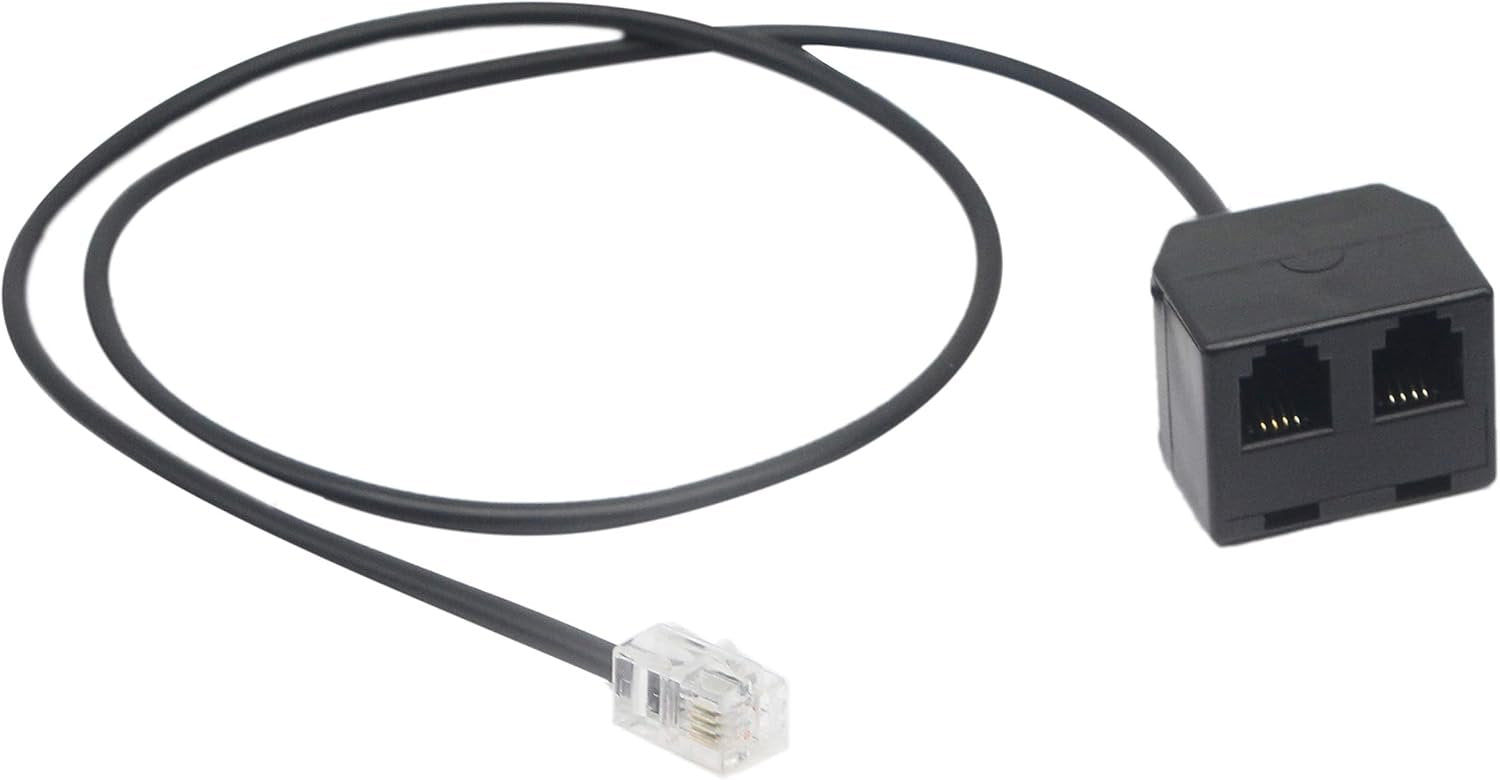 SinLoon Telephone RJ9 4P4C Splitter Adapter Cable RJ9 Headset Extension Cord Adapter 1 Male to 2 Double Female Connector for Hot Desking Office Phones Handset Splitter (2 RJ9 FM)