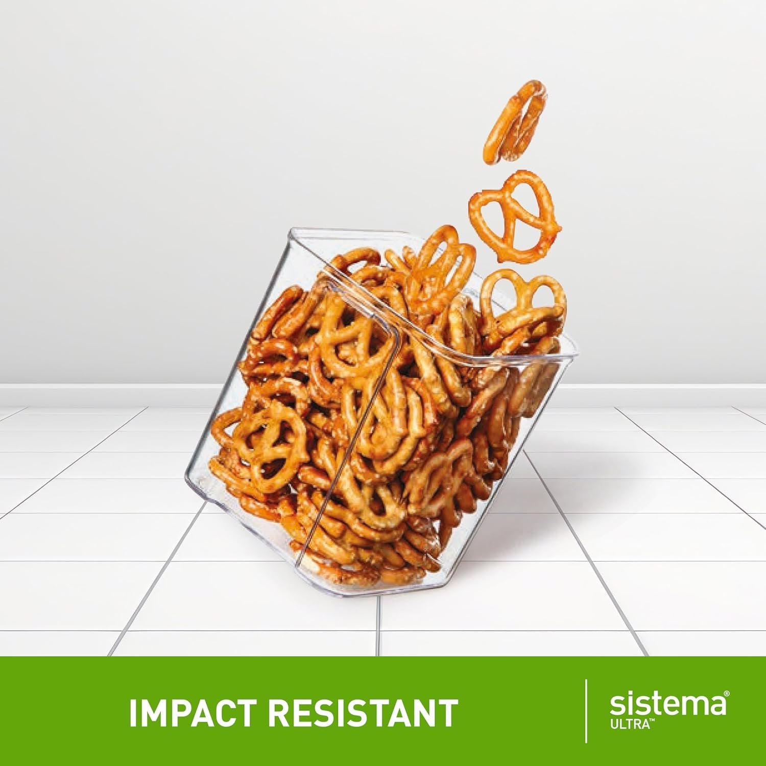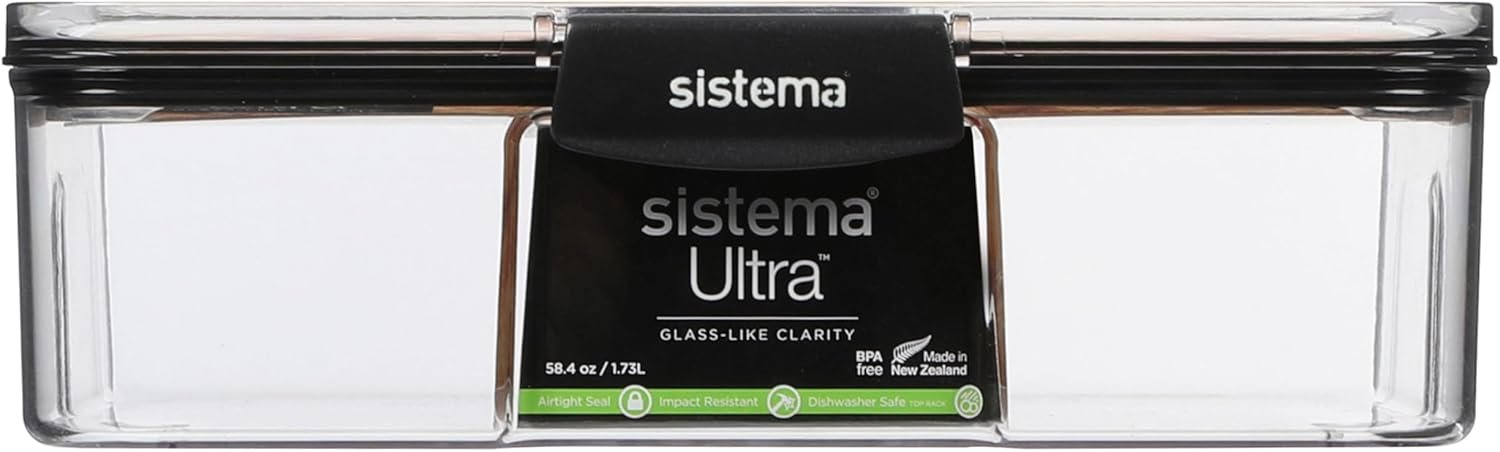 Sistema Ultra 2.63L Rectangle Food Storage Container | Stackable | Airtight Pantry Storage Container with Locking Clips | BPA & Phalate Free | Clear with Black Accents