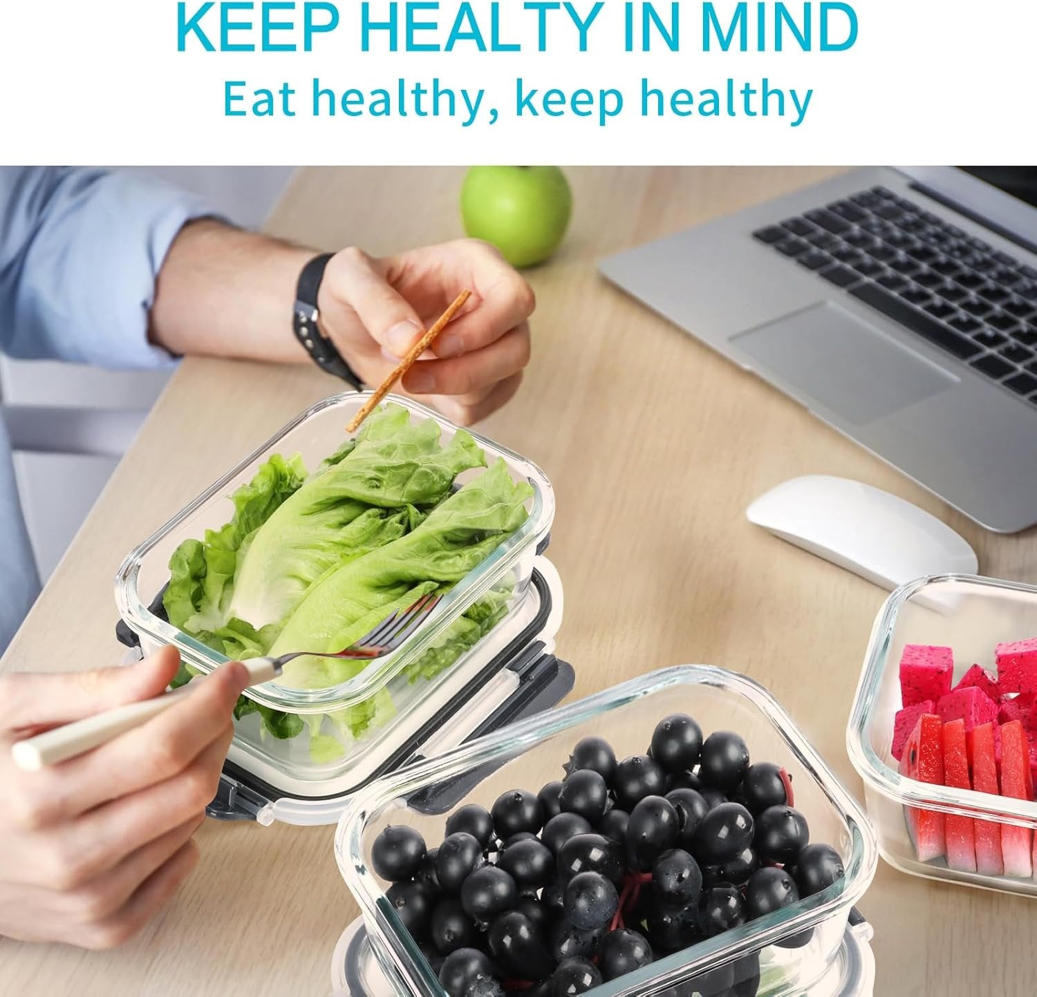 High-Quality Material: Skroam glass food storage containers with lids for Everything! Our meal prep containers glass set is made from high-quality borosilicate glass with a BPA-free lid, go straight from the refrigerator to the microwave or oven to the table, helping you enjoy hot meals anytime Bundle set: Skroam glass lunch containers with lids set include [10-Pack] rectangle containers (22 OZ), which adds a fun and vibrant touch to your meal prep routine. These meal prep containers reusable are versatile for different uses: meal prep food, leftovers, sauce, lunch to go, RV, picnic, camping, and more User-friendly: The food containers with lids can be used in the microwave(but not the lids), freezer, oven(up to 752°F/400°C, but not the lids), and dishwasher-safe(but not lids) as well. This glass containers with lids for food saves you valuable time, especially on busy days when you need a quick clean-up after enjoying your meals Save Space: This glass storage containers set has an excellent stackable design, they will easily fit into each other leaving more space on your kitchen slabs and cabinets, also perfectly stackable to fit in your refrigerator and freezer. Plus, In case of any issues, our customer service is here to help you in 24 hours