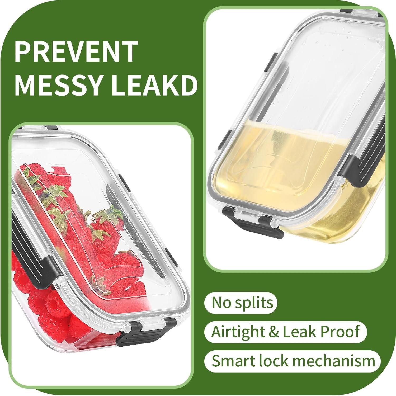 Bundle set: Skroam glass fridge organizers and storage set include 5-Pack rectangle containers (36 OZ /4.2 CUP/1040 ML), which adds a fun and vibrant touch to your meal prep routine. Overall, the glass storage containers with lids are a must-have for anyone looking to streamline their meal prep and storage No Leakage: Glass meal prep containers with lids are designed with removable silicone seals and Upgraded Snap Locking Lids to create an airtight and leak-proof barrier, ensuring your food stays fresh and spill-free. You can confidently carry soups, sauces, and even salads in your bag without any worries of messy accidents High-Quality Material: Our containers for food with lids are made from high-quality borosilicate glass with a BPA-free lid, which is stronger than cheaper glass food containers with lids, and go straight from the refrigerator to the microwave or oven to the table More Value: Skroam kitchen storage containers set is a must for anyone who wants a neat and nice look kitchen. These meal prep containers reusable are versatile for different uses: meal prep food, leftovers, sauce, lunch to go, RV, picnic, camping, and more