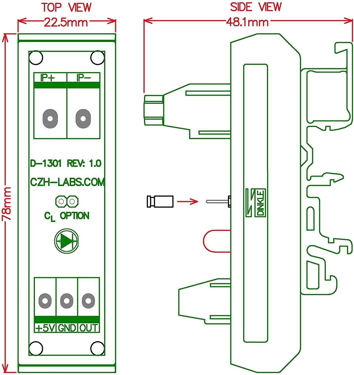 Datasheet: https://images-na.ssl-images-amazon.com/images/I/81eoq2TsgJL.pdf 1, The item disign based on ACS712 IC. The item provides economical and precise solutions for AC or DC current sensing in industrial, commercial, and communications systems. Typical applications include motor control, load detection and management, switched-mode power supplies, and overcurrent fault protection. 2, Operating Voltage: Regulated 5VDC. Operating Current: 20mA(max). Load Maximum Current: +/-5Amp, +/-20Amp and +/-30Amp selectable. Load Frequency Bandwidth: DC ~ 80 kHz. Minimum Isolation Voltage: 2.1 kV(RMS). Output voltage proportional to AC or DC currents. LED indicator for power supply +5V. Pin jumper option for signal output capacitor. 3, Load terminal block: Pitch 7.62mm/0.3", Strip length 8mm, Screws - M3, steel, Cr3+ Zn plated, Pin header and Cage – Brass, Wire range 26AWG ~ 10AWG / 4mm square, Rated voltage 300V, rated current 30Amp. Power supply and signal terminal block: pitch 5.0mm/0.197", strip length 7mm, screws - M2.5, steel, Cr3+ Zn plated, pin header and cage – brass, Wire range 28AWG ~ 12AWG / 2.5mm square. Rated voltage 300V, rated current 10Amp. 4, High quality Taiwan DINKLE Fireproof nylon material Slim DIN rail mount carrier, can support width 35 / 32 / 15mm rails.Electrical Parameters: Load Maximum Current: +/-5Amp, +/-20Amp and +/-30Amp selectable. Load Frequency Bandwidth: DC ~ 80 kHz. Minimum Isolation Voltage: 2.1 kV(RMS). Operating Voltage: Regulated 5VDC. Operating Current: 20mA(max).