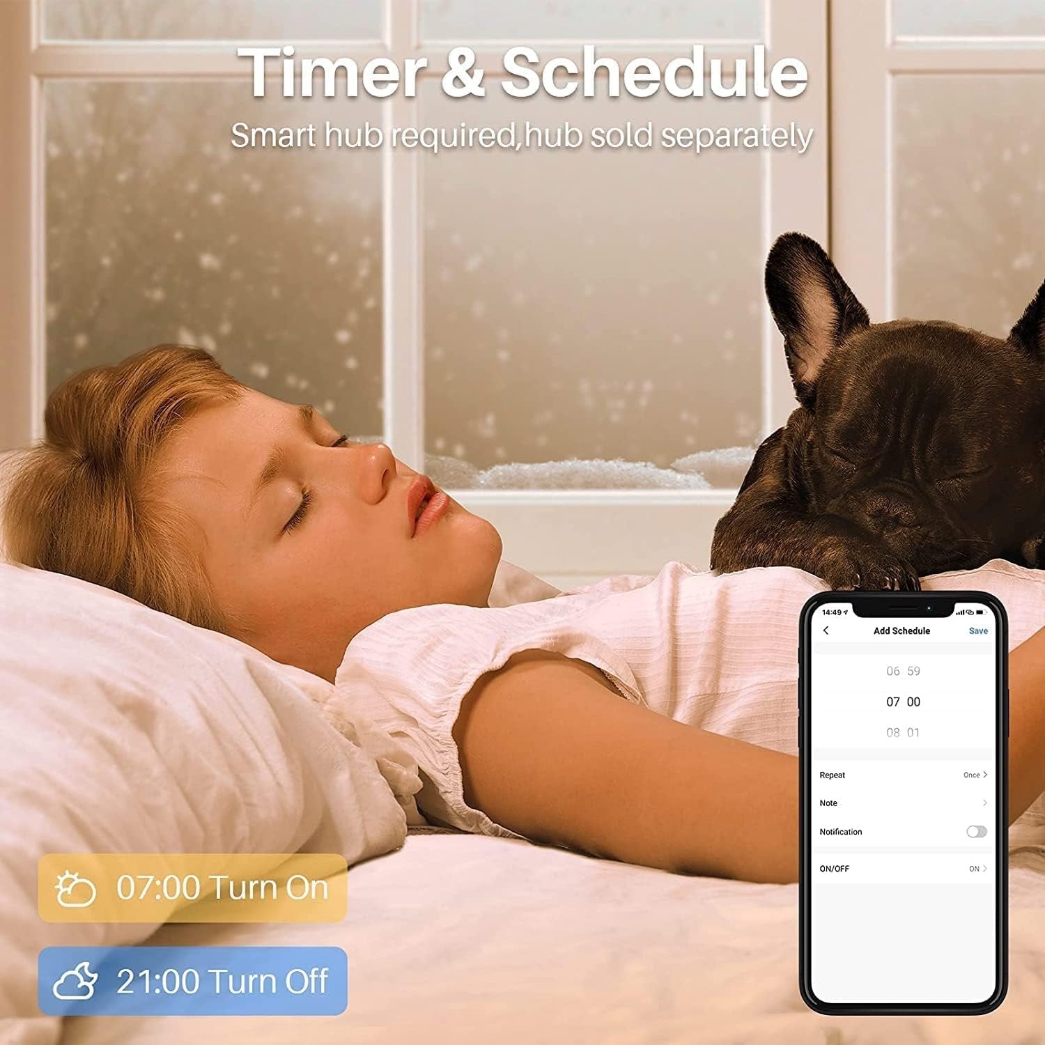 RGB and CW Parameter:14W(1000LM). PETEME WiFi Retrofit Can light supports cool white & warm white from 2700K to 6500K, providing 16 million colors.This Recessed lighting fills large Spaces with 1,000 lumens of bright light and enhances the safety of stairs and corridors. Group Control and Schedule Lights - Group all the soffit can lights together and control at the same time so that you can seperatly control the 6in baffle lights of bedroom, living room, etc. Set schedule or timer on smart recessed lighting to turn on/off automatically, in groups or individually. Voice Control and Music Sync - Connect your Smart Life APP account with Alexa first, then you can use simple dialogues to control these smart can lights and release your hands. Like taking a shower in the bathroom or cooking in the kitchen. Turn on music mode then lights will synchronize with the rhythm received by APP. APP Remotely Control - Download Smart Life APP for connecting these 6 inch recessed lighting and work with hub(come in package), then you can control lights even you’re away home. Easy Installation: Quickly install the 6-inch LED Retrofit Downlights into existing cans and offer flexibility for various recessed can connecting by E26 base. These can pot lights are suitable for installation in dry and damp locations, great for construction, remodels, and retrofit applications.