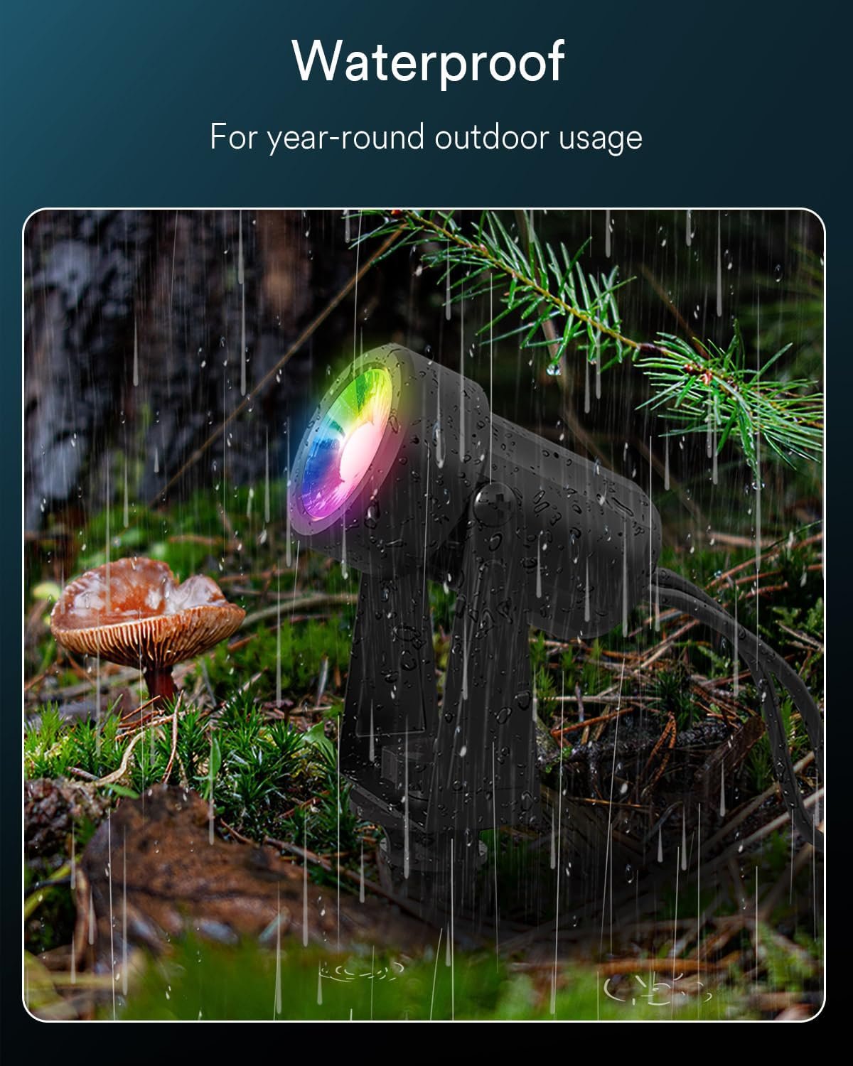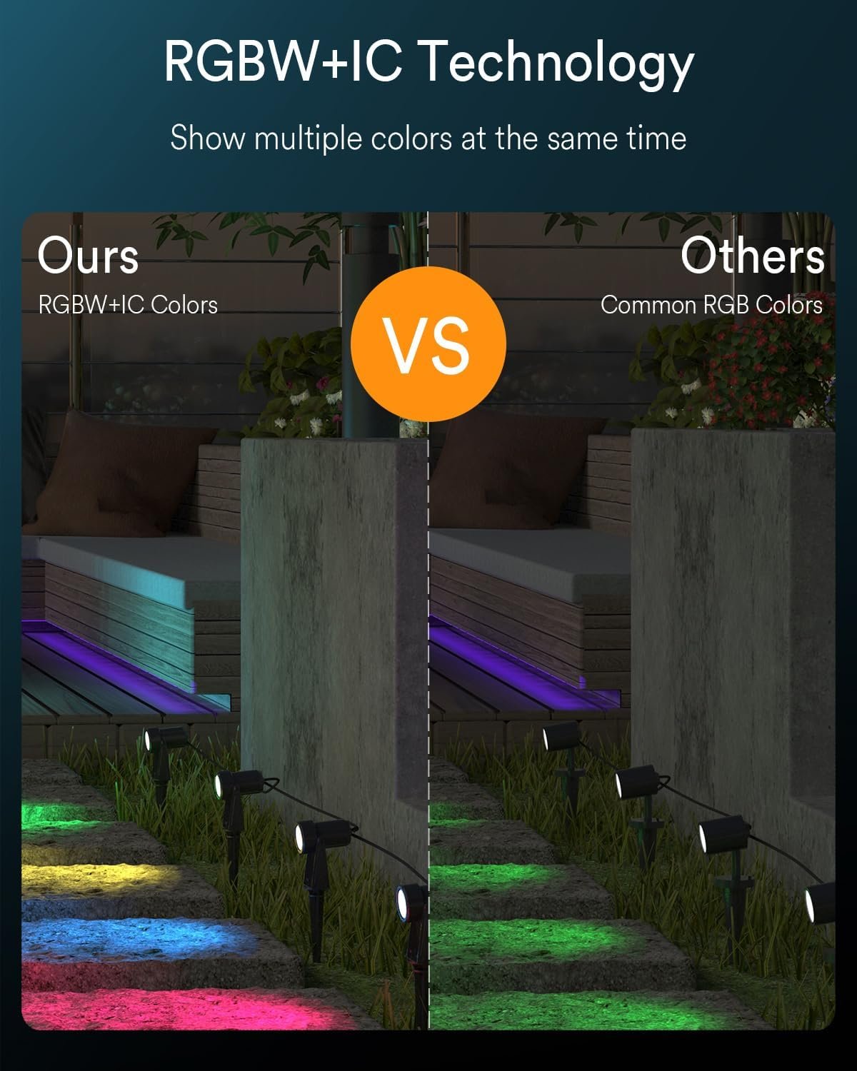 3 Ways to Control: You can easily control the outdoor LED spotlight via APP, voice, or the control button. Simply use voice commands to turn on or off lights, change light colors, and adjust brightness. Works with Alexa and Google Assistant for hands-free control. The outdoor uplights can use the Wi-Fi connection to use the APP to achieve remote control away from home. RGBW+IC Technology & Individual Control: You can set different colors, brightness, and ON/OFF for each landscape spotlight via RGBW+IC technology and switch between 16 million colors and warm white. Great choice for creating a festive atmosphere for your house, yard, garden, patio, lawn, wall, tree, fence, shrub, and more. Multiple Scene Modes & Grouping: The LED garden spot lights come with multiple scene modes to choose from according to your preferences. And the grouping setting allows you to control lights with one key. You can achieve group control by buying two sets or more spotlight strings. More Functions: Come with more additional functions, including a timer, schedule, countdown, memory, etc. You can set a timer to automate your lighting schedule for any occasion via the Smart Life APP. Such as lighting up your house or garden at night with the pathway lights wired.