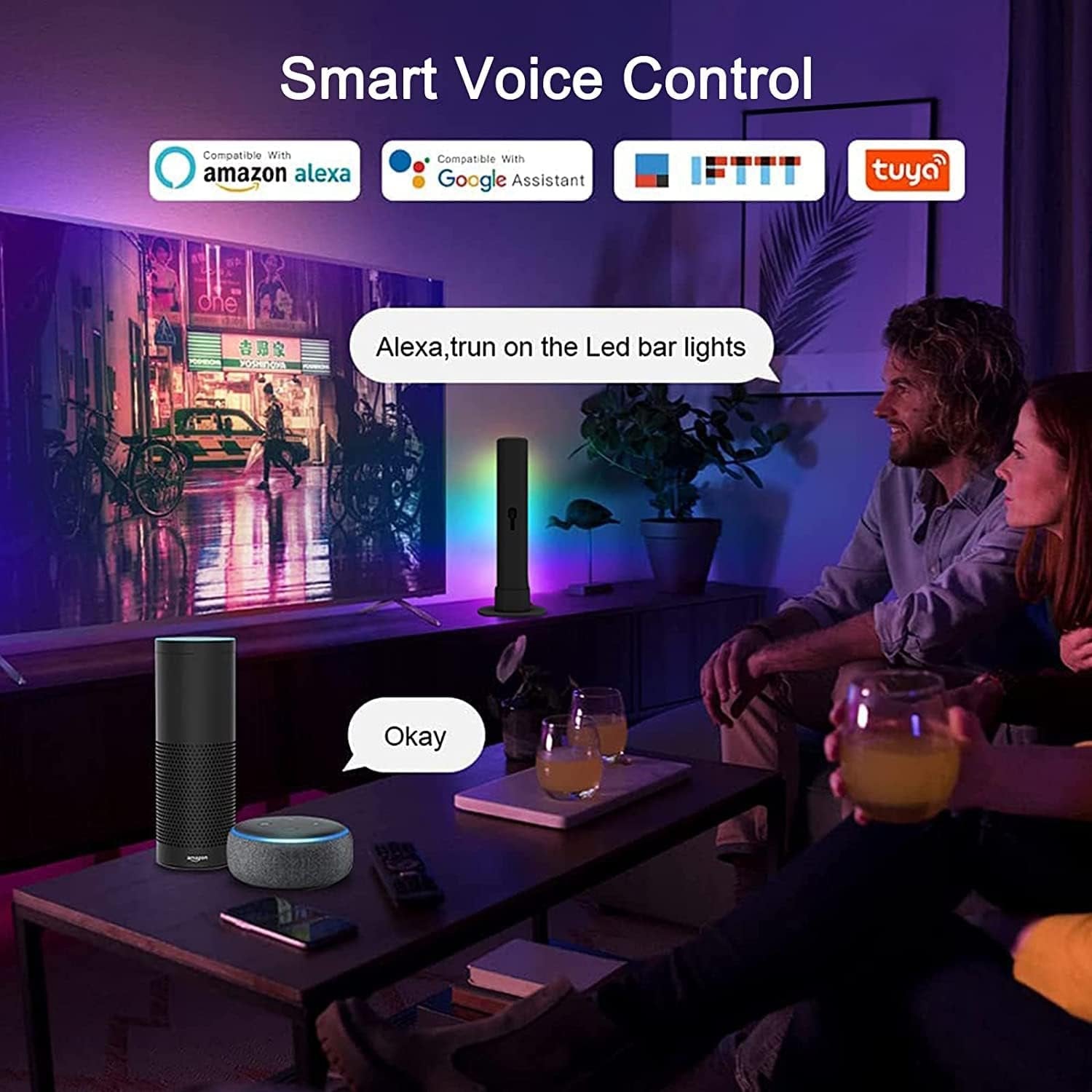 🎮 IMMERSIVE RGBICWW GAMING & AMBIENT LIGHTING: Elevate your setup with advanced RGBICWW technology. Unlike standard RGB, these Smart LED Light Bars display multiple colors simultaneously across segments, creating fluid gradients and dynamic effects. Choose from 16 million colors and 27+ scenes for truly immersive ambient lighting perfect for gaming, movies, or enhancing room mood. ðŸ—£ï¸ SEAMLESS VOICE & SMART APP CONTROL: Integrate effortlessly into your smart home. Control your WiFi Gaming Lights hands-free using Alexa or Google Assistant for power, brightness, colors, and scene changes. Gain full customization via the "Smart Life" app – group lights, set timers, and access DIY modes for personalized smart lighting. 🎵 DYNAMIC MUSIC & AUDIO SYNC: Bring your entertainment to life! With a built-in high-sensitivity mic, the light bars react and pulse in real-time to the beat of your music, game audio, or movie soundtracks. Create a captivating audio-visual experience with vibrant Music Sync Lights – no external hub or connections needed. 💡 ULTIMATE CUSTOMIZATION & PRESETS: Unleash your creativity! Use the "Smart Life" app's DIY mode to design your own unique color patterns and animations, taking full advantage of the RGBICWW segment control. Instantly switch vibes with 27+ preset dynamic scene modes (like Rainbow, Fire, Starry Night) designed for gaming, relaxation, or parties. ðŸ–¥ï¸ VERSATILE PLACEMENT FOR ANY SETUP: Install these LED Light Bars exactly how you want. Use the included stands for vertical placement beside your monitor or TV, lay them flat horizontally, or use the provided brackets to mount them as TV Backlights or Monitor Backlights. Ideal for desks, gaming stations, living rooms, or anywhere you need dynamic ambient light.