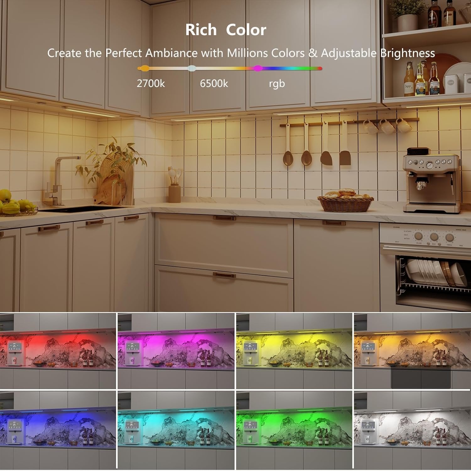 Smart Under Cabinet Lighting White & Multicolor LED Strip Lights Dimmable Works with Alexa,Google Home,Smart APP Remote Control RGB Kitchen Lamp Plug in for Under Counter Light Fixtures,6pcs