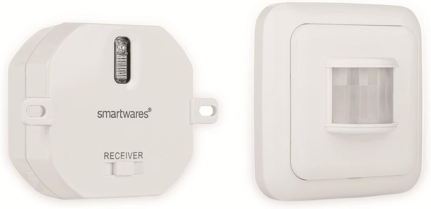 Brand-Smartwares Colour-White Power source-Battery Powered Item weight-121 Grams This home automation kit is the solution if you want your lights to be turned on by motion detection, ideal for the hallway. Includes a wireless motion sensor and an integrated switch. Adjustable light sensitivity and timer. No more killing in the dark to turn on the light, whether you get up at night or come home with loaded arms. This home automation kit includes a motion sensor and a light control module to turn on the light exactly where you need it, when you need it. Motion sensor and module communicate via radio frequencies 433 MHz (range 30 m). When the sensor detects movement, it sends a signal to the lighting you have chosen to turn on. The switch will automatically shut off after the selected time during installation. Choose the room of your choice (cabinet, bathroom, hallway, etc.) and the light to be controlled. Install the module into the junction box of your lamp. Pair your devices and then determine how long your lighting stays on (5 seconds, 5 or 10 minutes). and the sensitivity of the sensor. After inserting the included alkaline batteries, install them in the right place on the wall with double-sided tape. The Plug & Connect series is the starting point for your connected home. It improves your daily life by providing simple and customizable home automation solutions. Connect up to 99 devices together! Control your lighting from your smartphone by connecting the Smart Switch socket to your recessed sockets. So you can control your lights from your app and do it anywhere in the world