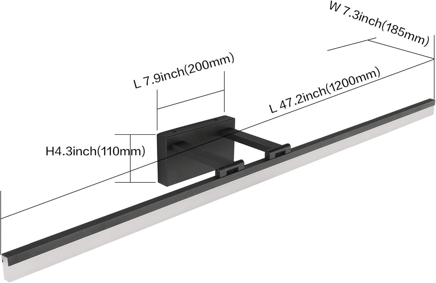 SOLFART 47.2 Inch Adjustable Color Temperature Dimmable LED Bathroom Light Fixtures Matte Black Vanity Lights LED Lights for Bathroom Black Light Bar Modern APP Control Lighting Fixture