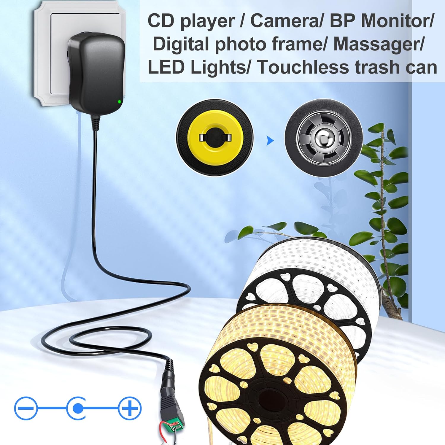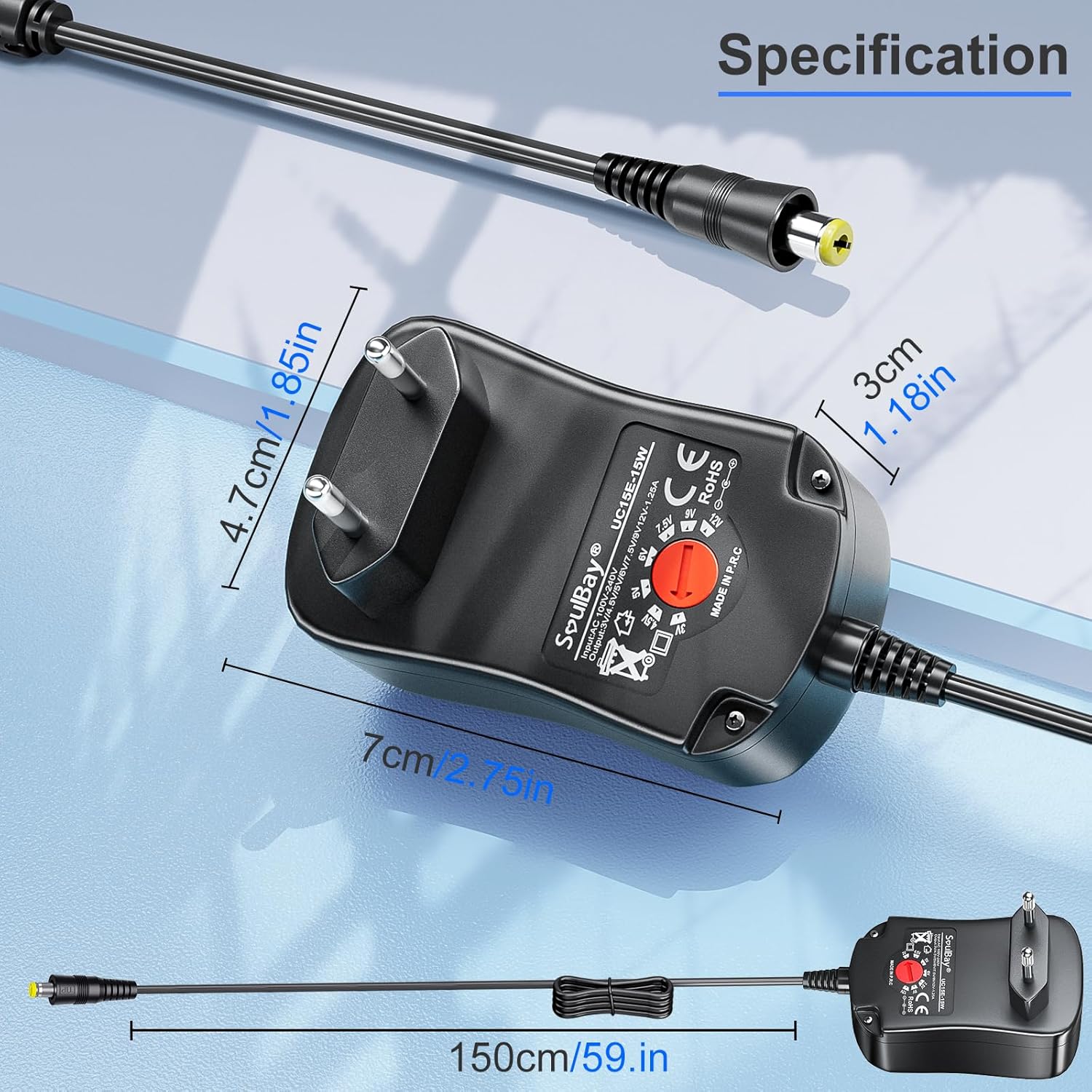 ✔️ AC Input: 100-240V 50/60Hz, DC Output: 3V / 4.5V / 5V / 6V / 7.5V / 9V 1500mA, 12V 1250mA Max.Polarity: Central Positive You can easily adjust the tension using a small wrench included in the package. ✔️ SAFE TO USE: This replacement AC power supply offers a range of voltage, replaceable tips, FULL PROTECTION against over-voltage/over-current/short circuit/over temperature. ✔️ Widespread Applications: This multi-voltage and multi-tip AC adapter can apply to most devices that the efficient voltage is between 3V and 12V. Such as some appliances, routers, speakers, baby monitors, GPS USB port, camera, CCTV security camera and other uses. ✔️ COMPACT DESIGN - Made of durable and high quality material. Adopt straight plug, 1.5m long charging cable, more convenient! ✔️ 8 IN 1 DC ADAPTER - Comes with 8 adapters, different sizes will fit your devices well and solve your various problems. You can largely save space and can replace many chargers. NOTE: If you have any product quality problems, please feel free to contact us at any time and we will help you!
