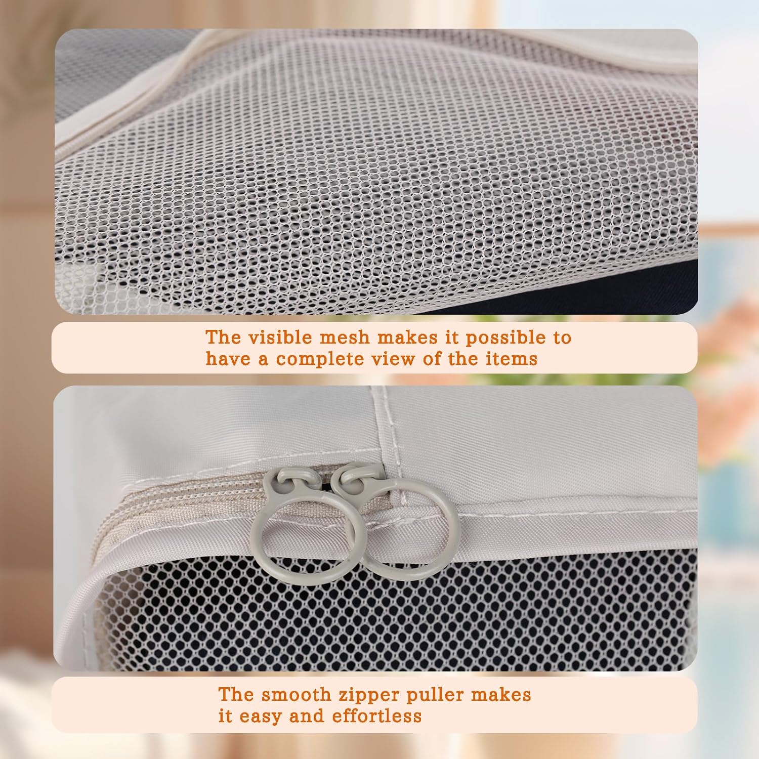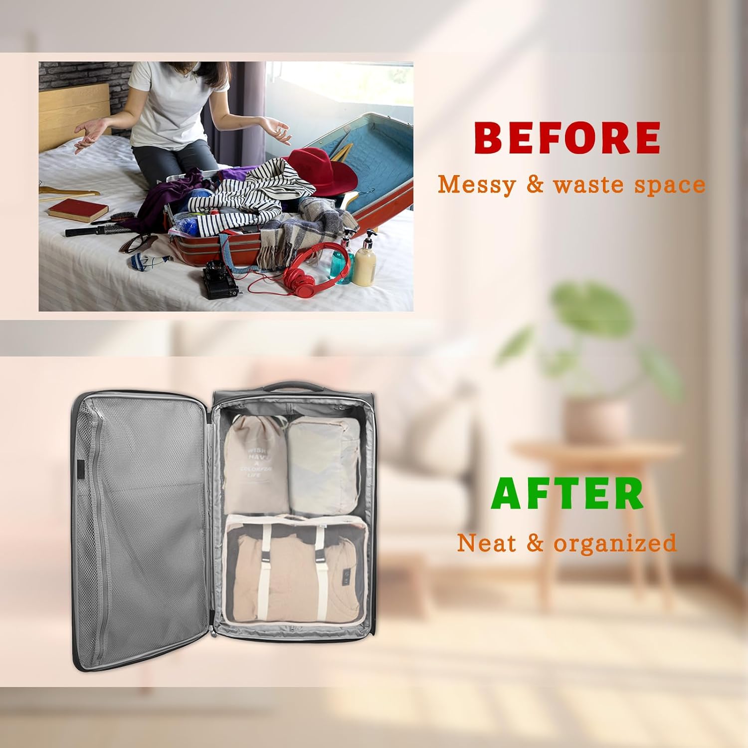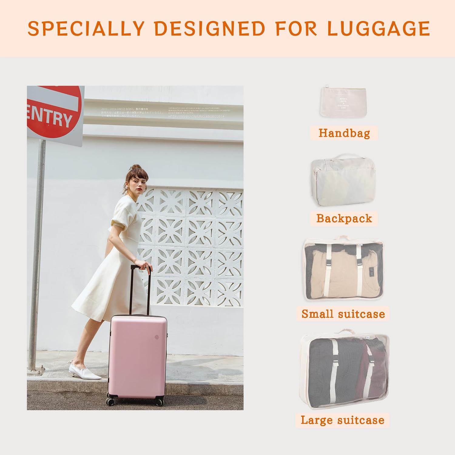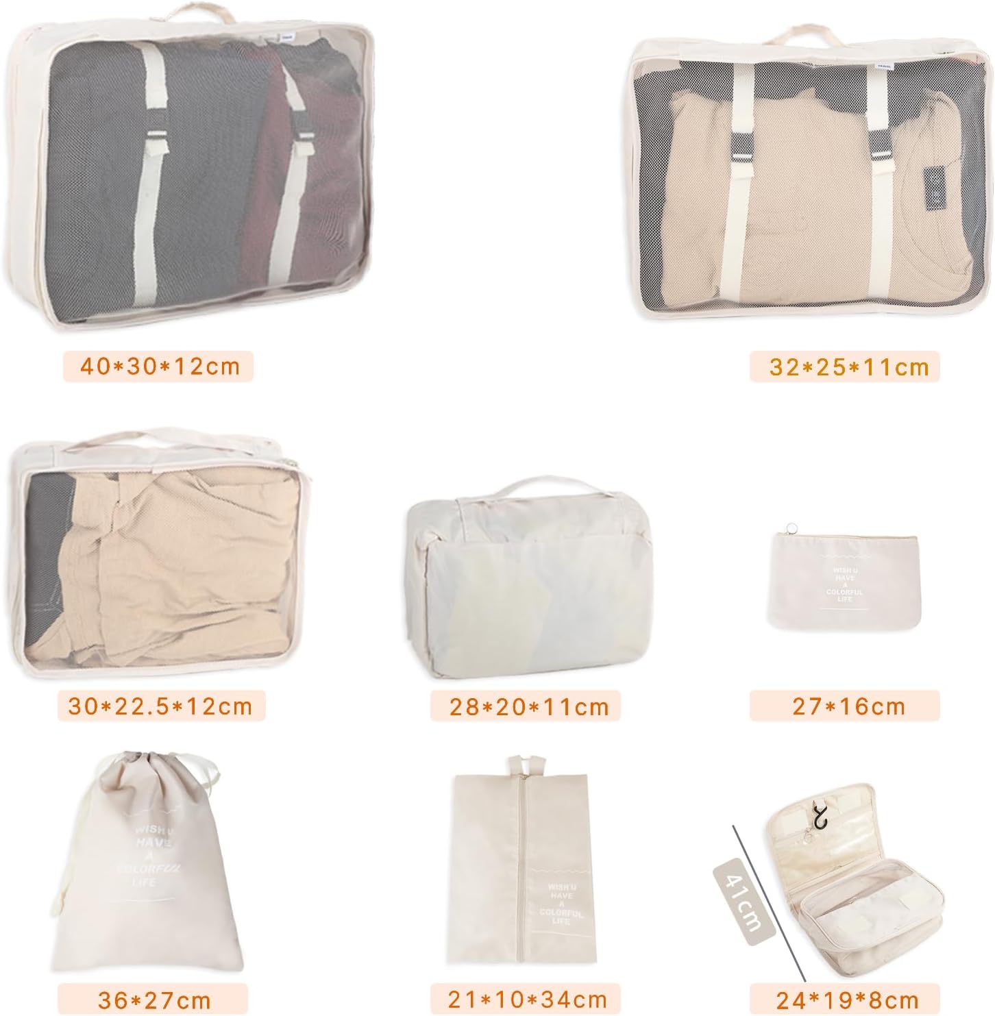 Space Saving Suitcase Organizer 8 Pieces - Packing Cubes for Travel, Suitcase Organizer with Clothes, Shoes and Cosmetics Bags - Useful Accessories Suitcase Organizer Set (Beige)