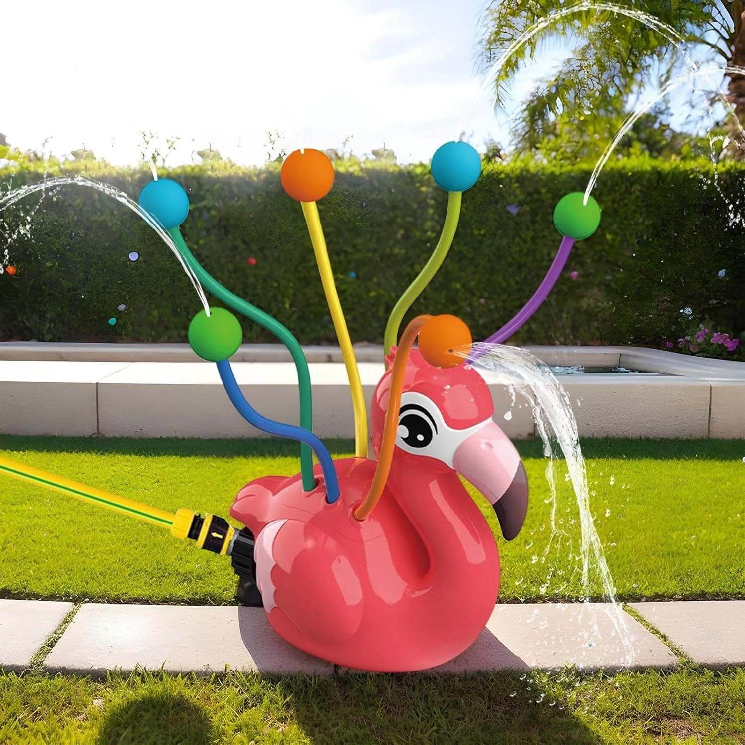 Encourages active play and exercise: Great for encouraging physical activity, this water sprinkler promotes running, jumping, and active outdoor play, making it ideal for family gatherings, birthday parties, or playdates Durablessss and kid-friendly material: Crafted from high-quality, materials, this sprinkler is built to last through hours of outdoor fun while ensuring safety for your children during play Safe and easy to set up: The sprinkler connects quickly to any standard garden hose and is simple to set up, making it a hassle-less addition to your outdoor water play activities Perfect outdoor water toy for kids: This outdoor sprinkler is designed for children, offering a fun and refreshing way to cool off and play during hot summer days in the garden, backyard, or on the lawn