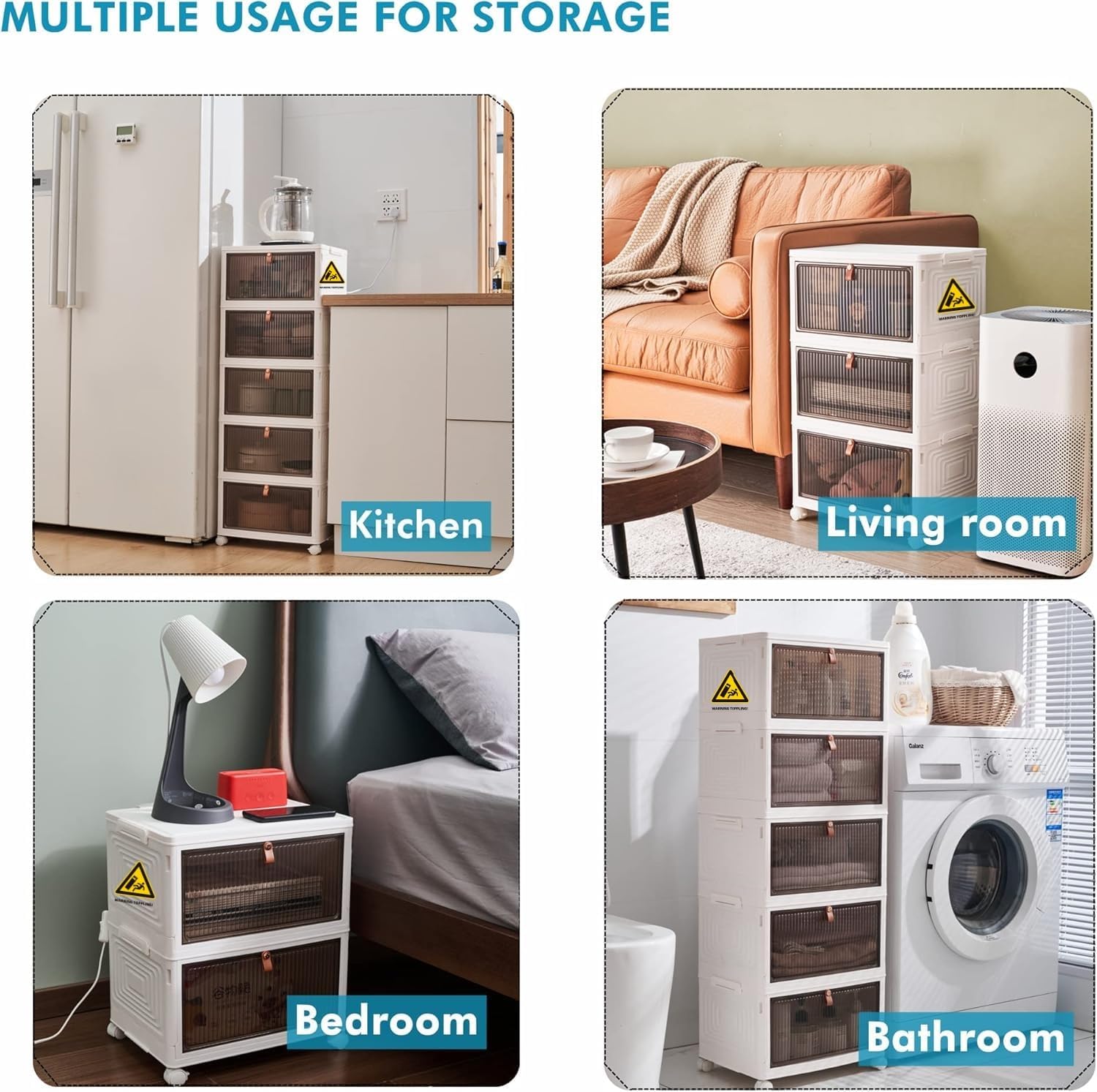 CAPACITY MULTIFUNCTION - Each stackable storage box measures 15.35“×11”×8.27“. The collapsible storage bins are perfect for sorting out clothes, snacks, towels, crafts, art suppliers, dog food in bedroom, laundry, garage, etc. An excellent rolling carts with wheels for kitchen organizers and storage. STACKABLE & COLLAPSIBLE DESIGN - The plastic drawers can be stacked for sorting out items, you can stack the plastic boxes of different height levels to better utilize the vertical storage for small spaces. When not use, the collapsible design save your home space to the most. STURDY & DURABLE MATERIAL - Made of premium PP material, the folding storage bins for clothes are more durable and sturdier than other plastic storage cabinet with doors, it has crafted sides, better joints and tougher panels. Not easy to damage, once purchase for a long term use. EASY ASSEMBLY & MOVABLE - The stylish plastic containers with lids can be installed with no tools. It comes with 2 lockable wheels, each layer has matching grooves and clasps on both sides of the top to securely lock the cabinet, making it easy to move the stackable storage bins with wheels or clean the floors in Kitchen or bathroom organizers and storage. 24 HOURS ONLINE SERVICE - The stacking storage bins come with a clear installation instruction manual. We provide a professional after-sales team for 24 hours online service. Contact us if there is any problem. We will try our best to slove any problem for you.