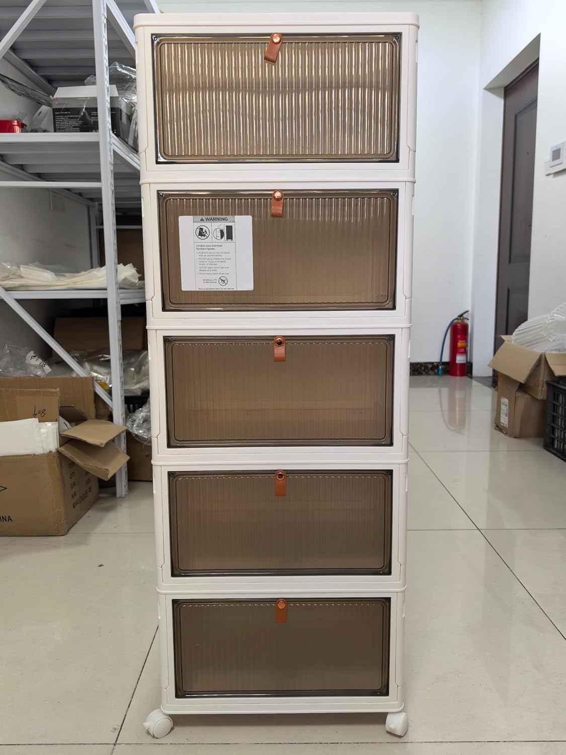 Stackable Storage Bins with Lids, Collapsible Closet Organizers and Storage Bin with Wheels, Foldable Organization Bins for Cabinet, Plastic Containers for Home (White-5 Tier)