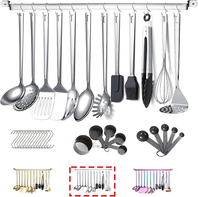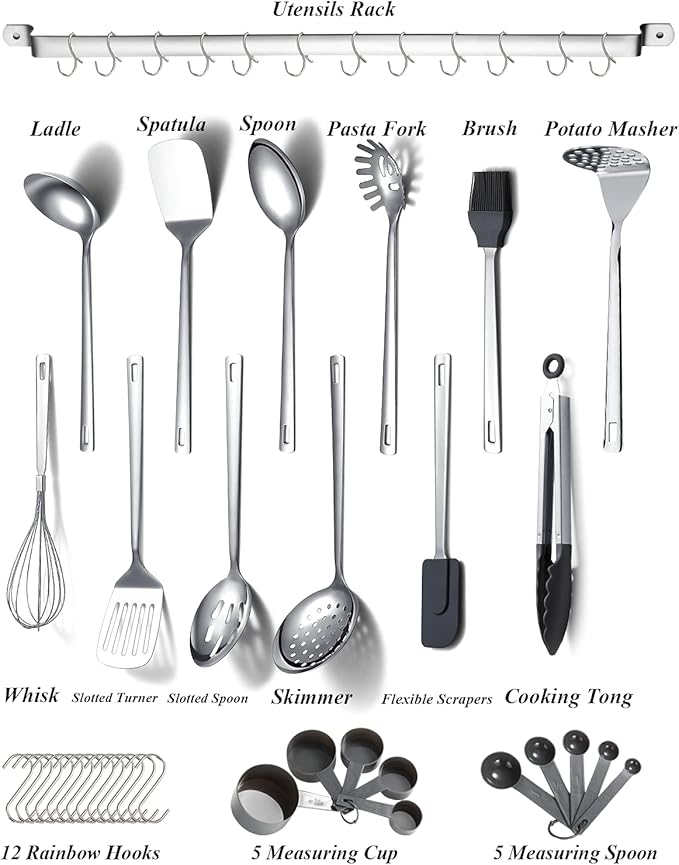 Stainless Steel Cooking Utensils Set,Kyraton 37 Pieces Kitchen Utensils Set, Kitchen Tool Gadgets Set with Utensil Holder Non-Stick and Heat Resistant Dishwasher Safe